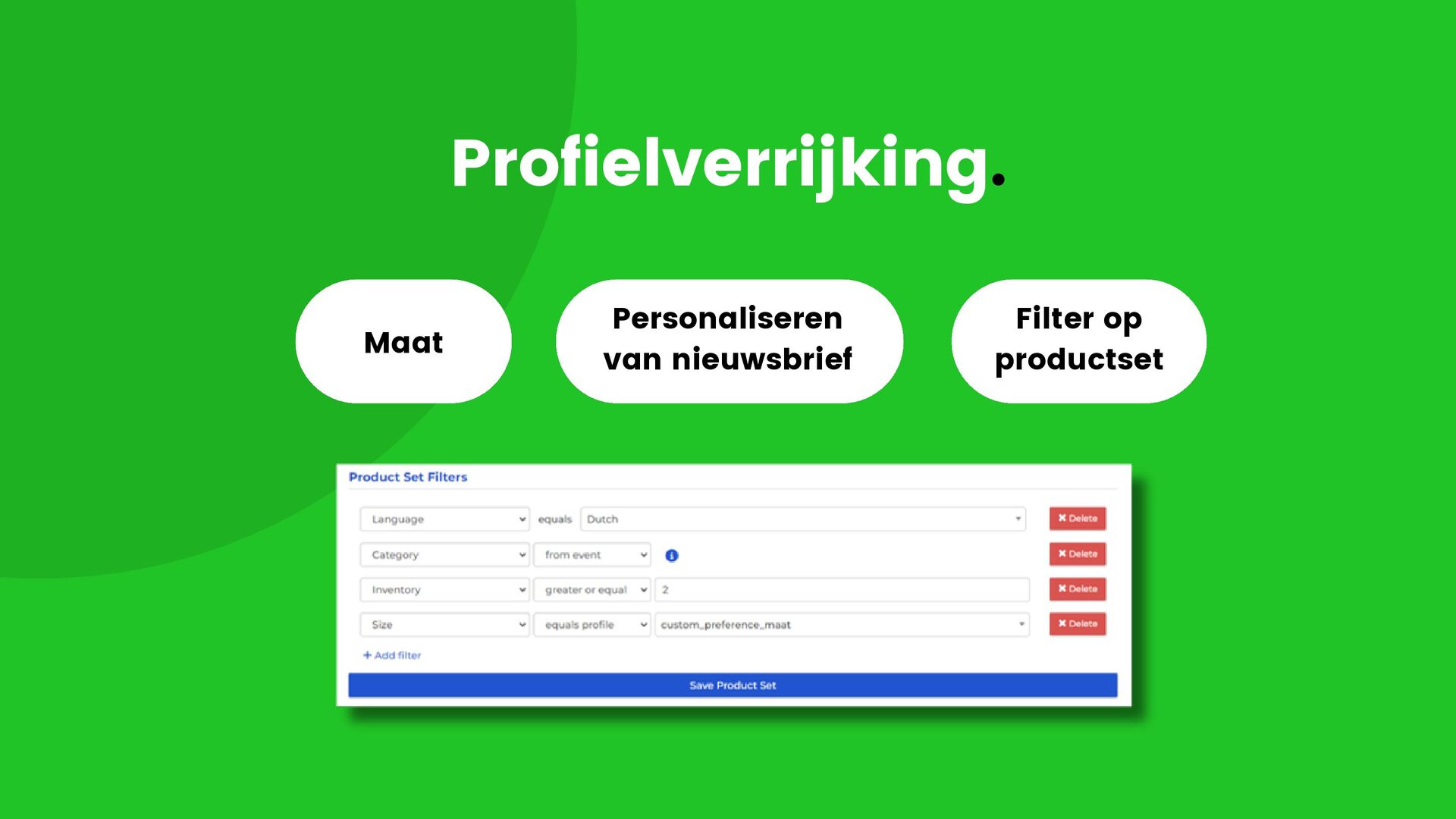 Maat Personaliseren van nieuwsbrief Filter op productset Profielverrijking.
