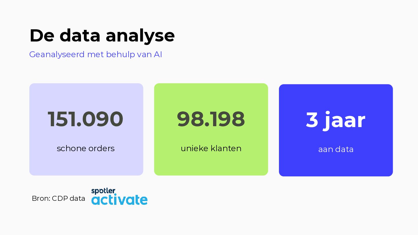 orders 98.198 unieke klanten 3 jaar aan data Bron: CDP data