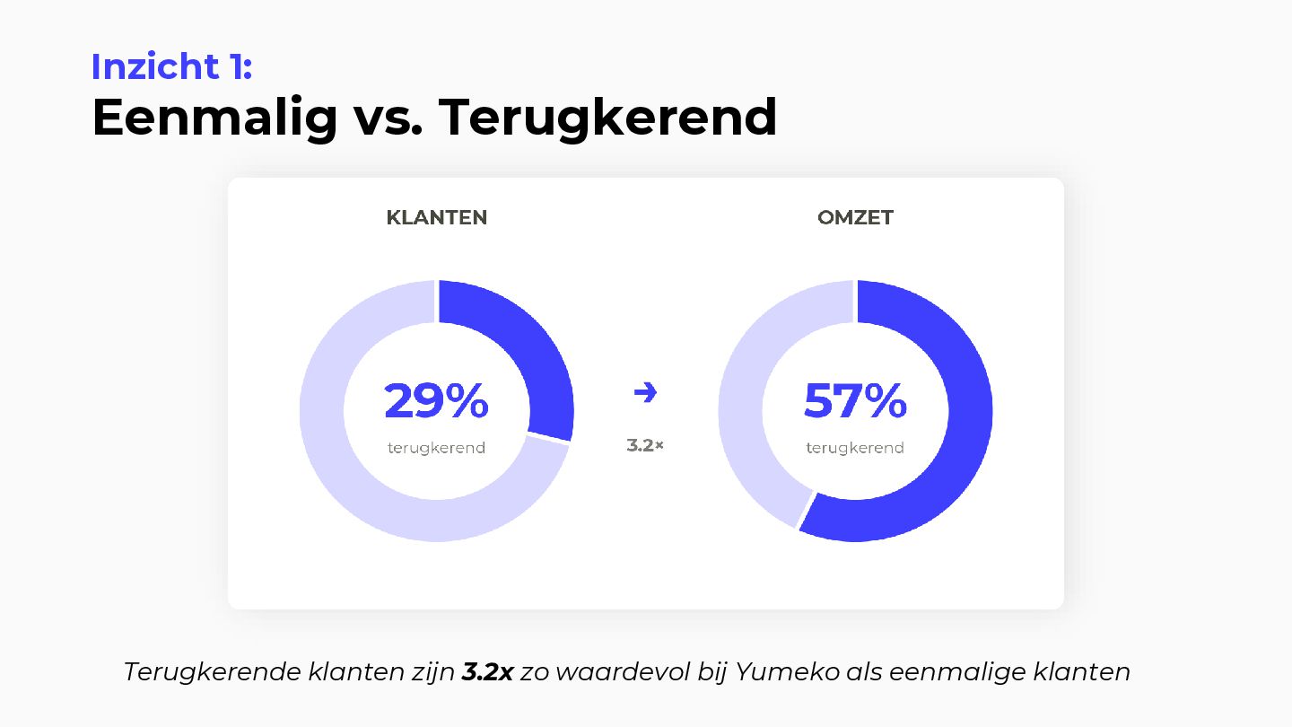 Inzicht 1: Eenmalig vs. Terugkerend Terugkerende klanten zijn 3.2x zo