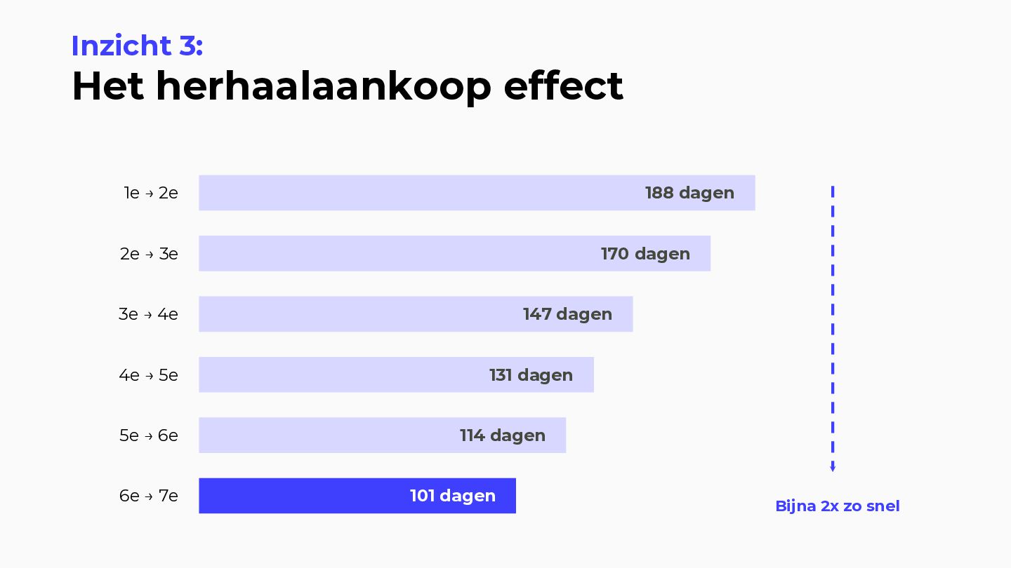 Inzicht 3: Het herhaalaankoop effect 1e → 2e 188 dagen