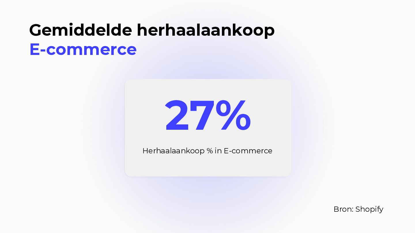 Gemiddelde herhaalaankoop E-commerce 27% Herhaalaankoop % in E-commerce Bron: Shopify
