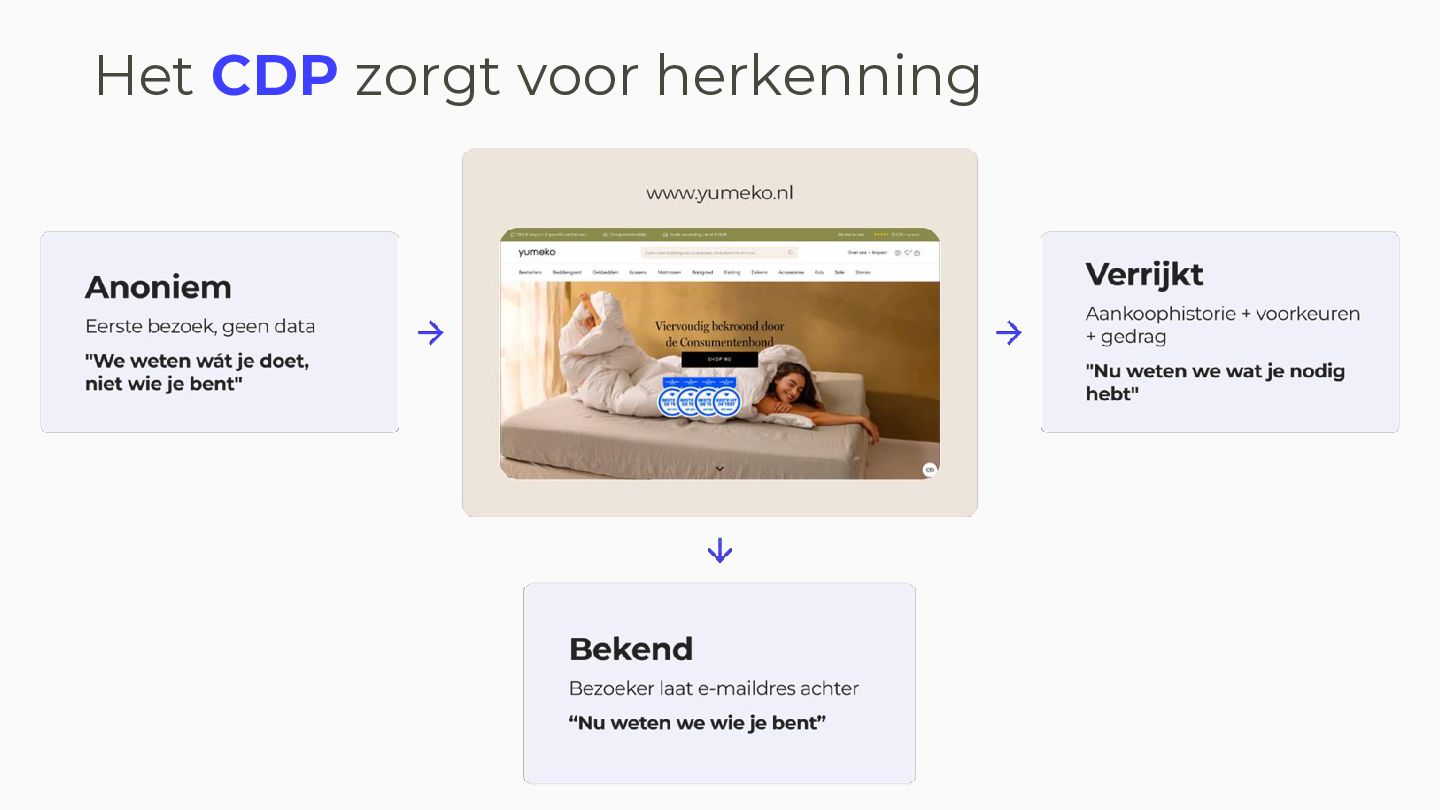 Slaaphouding? → First-party data Voorkeuren syncen naar CDP → 360° Profiel Bekend en activeerbaar