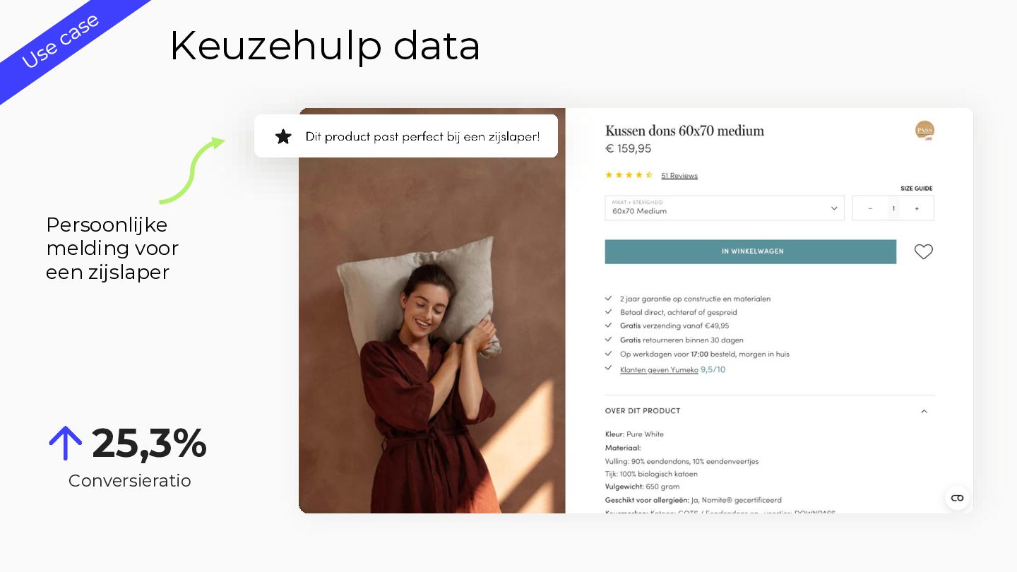 Keuzehulp data 25,3% Conversieratio Persoonlijke melding voor een zijslaper
