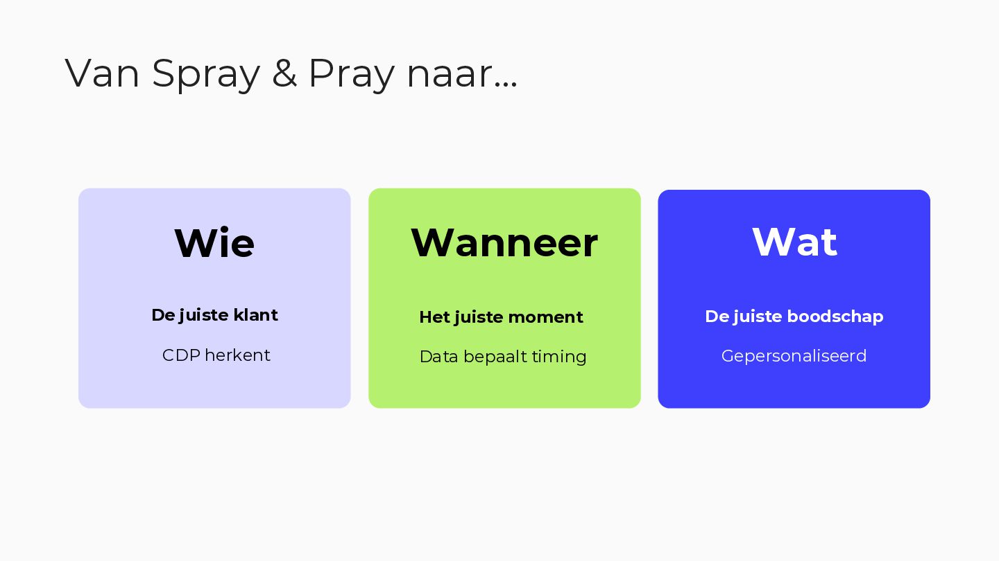 herkent Wanneer Het juiste moment Data bepaalt timing Wat De juiste boodschap Gepersonaliseerd