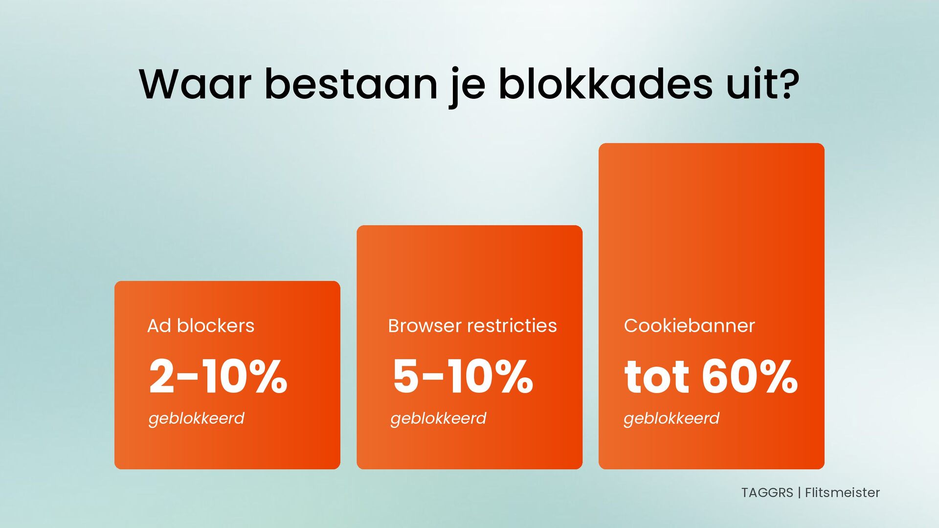 2-10% geblokkeerd Ad blockers Browser restricties 5-10% geblokkeerd Cookiebanner tot