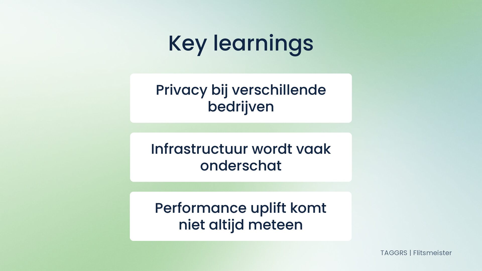 Privacy bij verschillende bedrijven Key learnings TAGGRS | Flitsmeister Infrastructuur