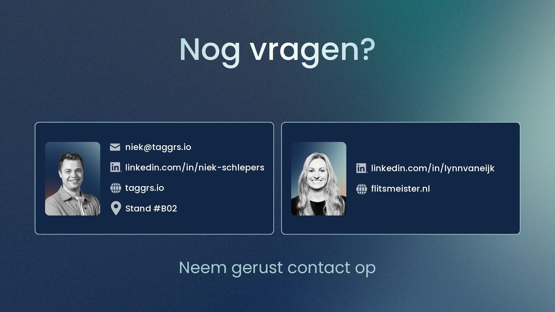 linkedin.com/in/niek-schlepers taggrs.io Stand #B02 Nog