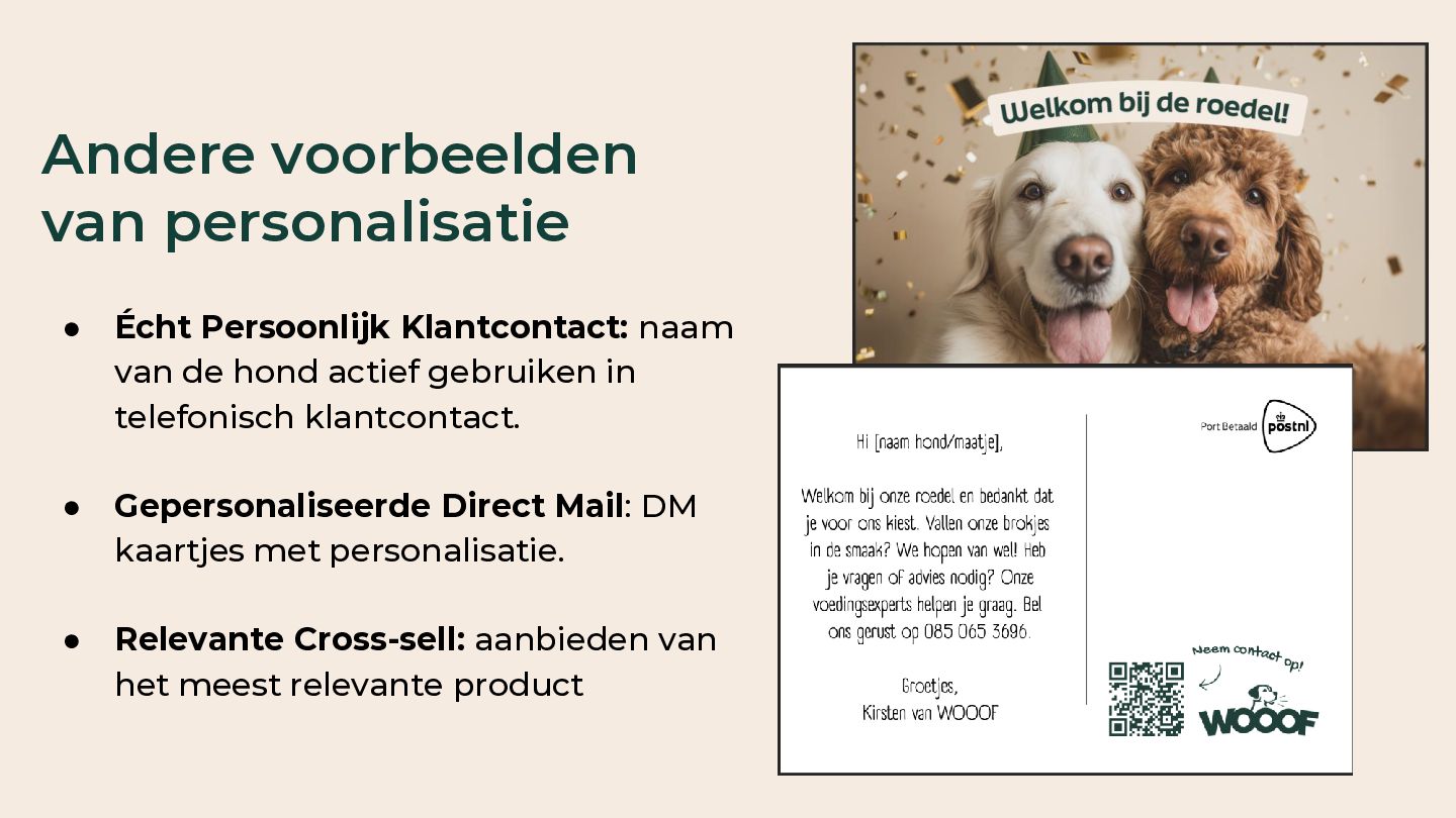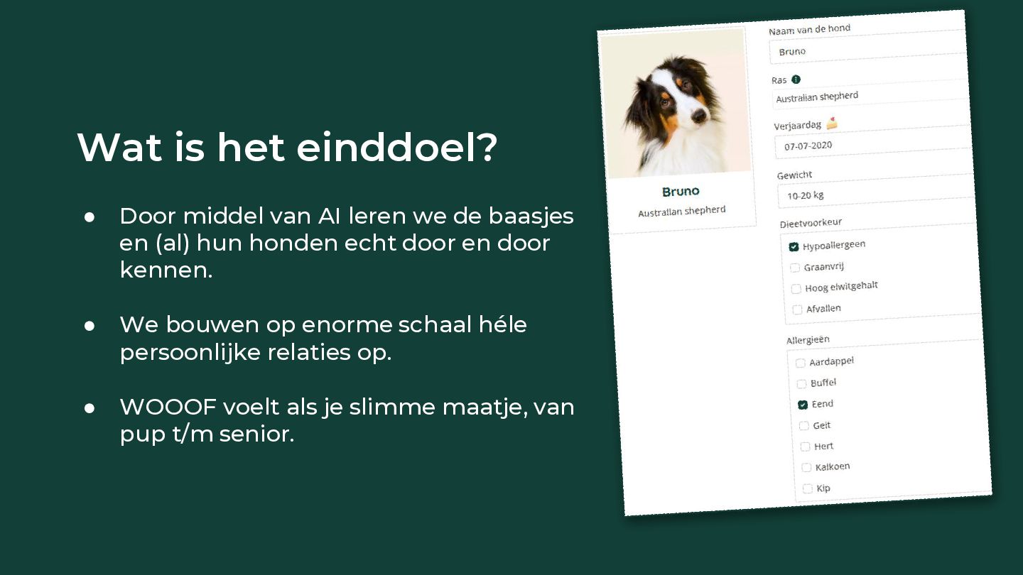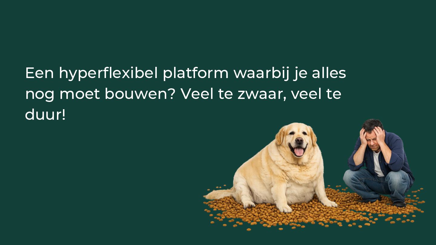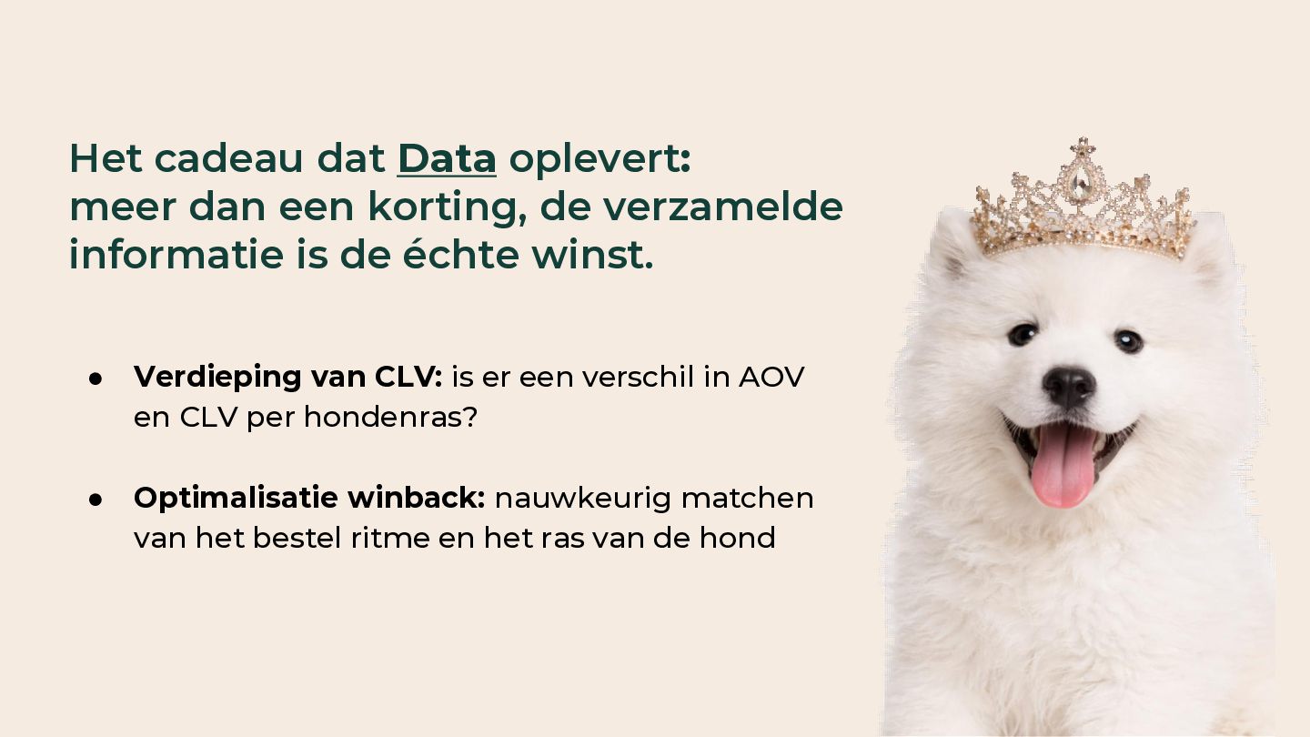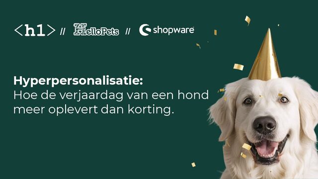écht de baas is.. • De hond is de 'echte baas' maar cruciale klantinformatie ontbrak. • Informatie zoals ras, leeftijd en voorkeuren was niet beschikbaar. • Zonder data, geen personalisatie • Shopware's open source karakter bood uitkomst voor de personalisatie.