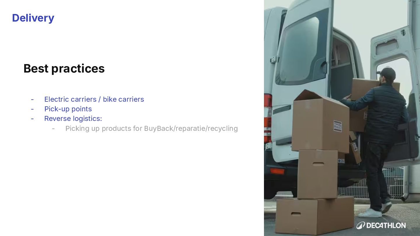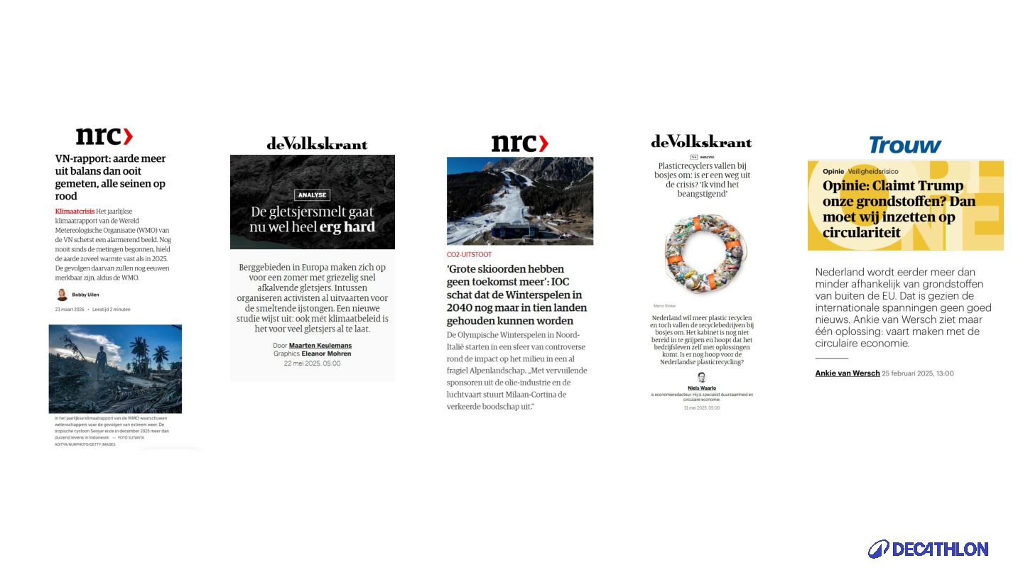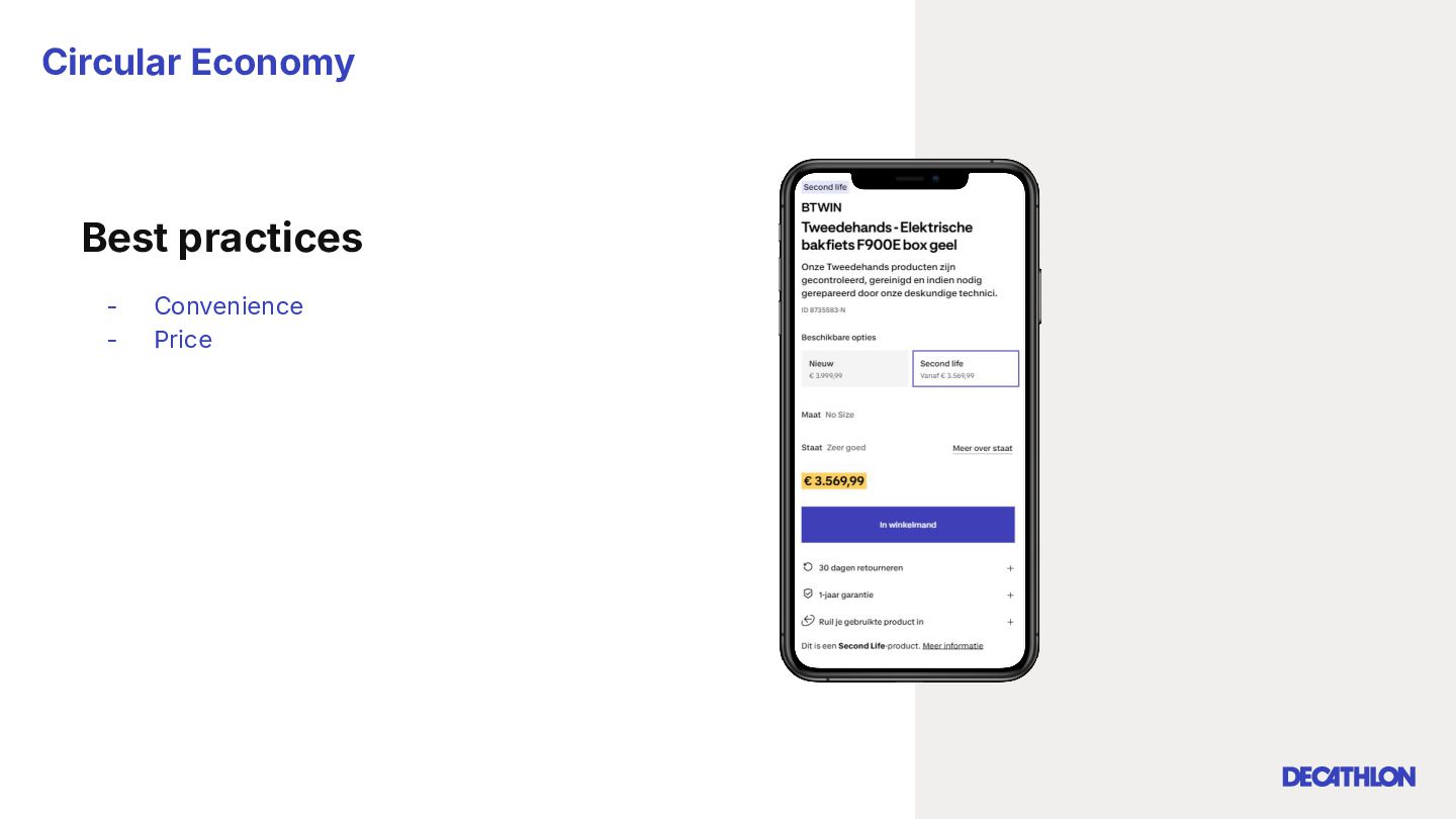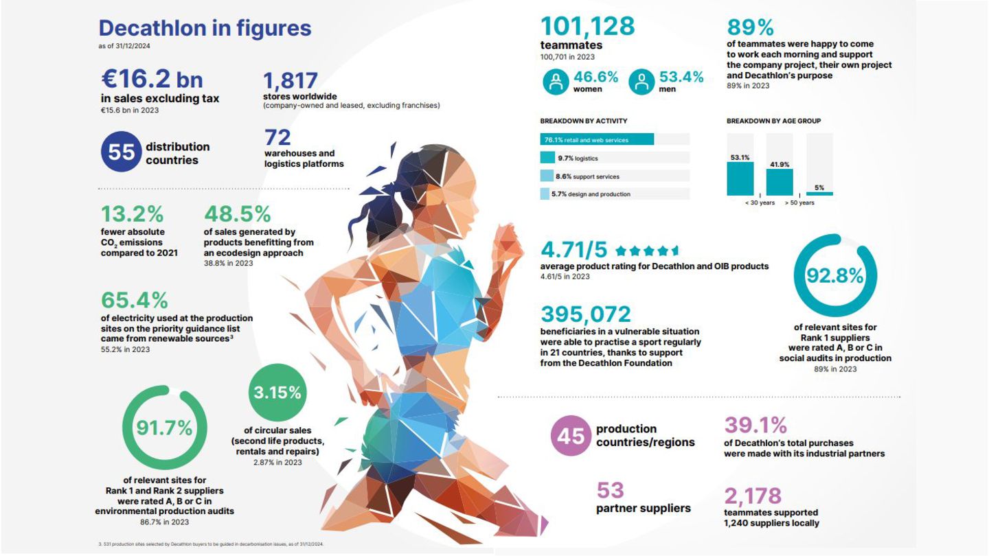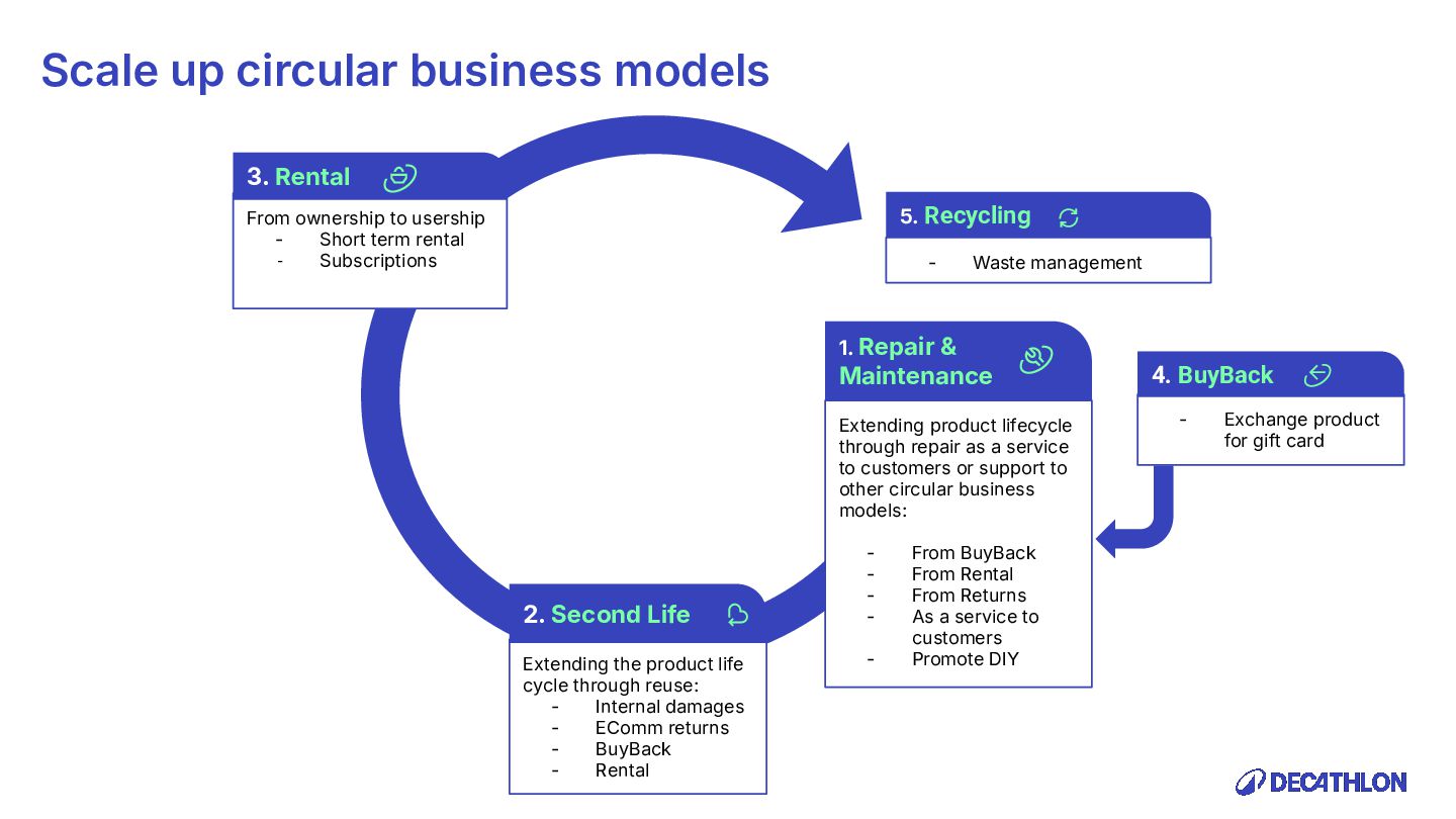 (including equivalent CO2 Climate Change) compared to the impact of the similar product (before ecodesign) and without significant deterioration of other indicators. 10% SPECIFIC CRITERIA TEXTILE* EQUIPMENT* FOOTWEAR* Follow 1 criteria in the list (ex : 70% recycled PES, 30% recycled cotton, dope dyeing, etc….) 25% of the weight of the product contains less impacting materials/processes Follow at least 2 criteria in the list (ex : Recycled plastics, reduction of material use, use steel instead of aluminium, …) COMMON CRITERIA Increase the life span by at least 30% by following a methodology to establish the durability of the product. Cover at least 80% of product breakage and failure OR OR The 90% textile weight criterion was defined according to the environmental issues of the tent family (mainly on fabric) TENT* *For each criteria, there are some specific features & exclusions. Achieve a total of 12 points with actions in a given list BIKES* Our ecodesign framework Durability Reparability