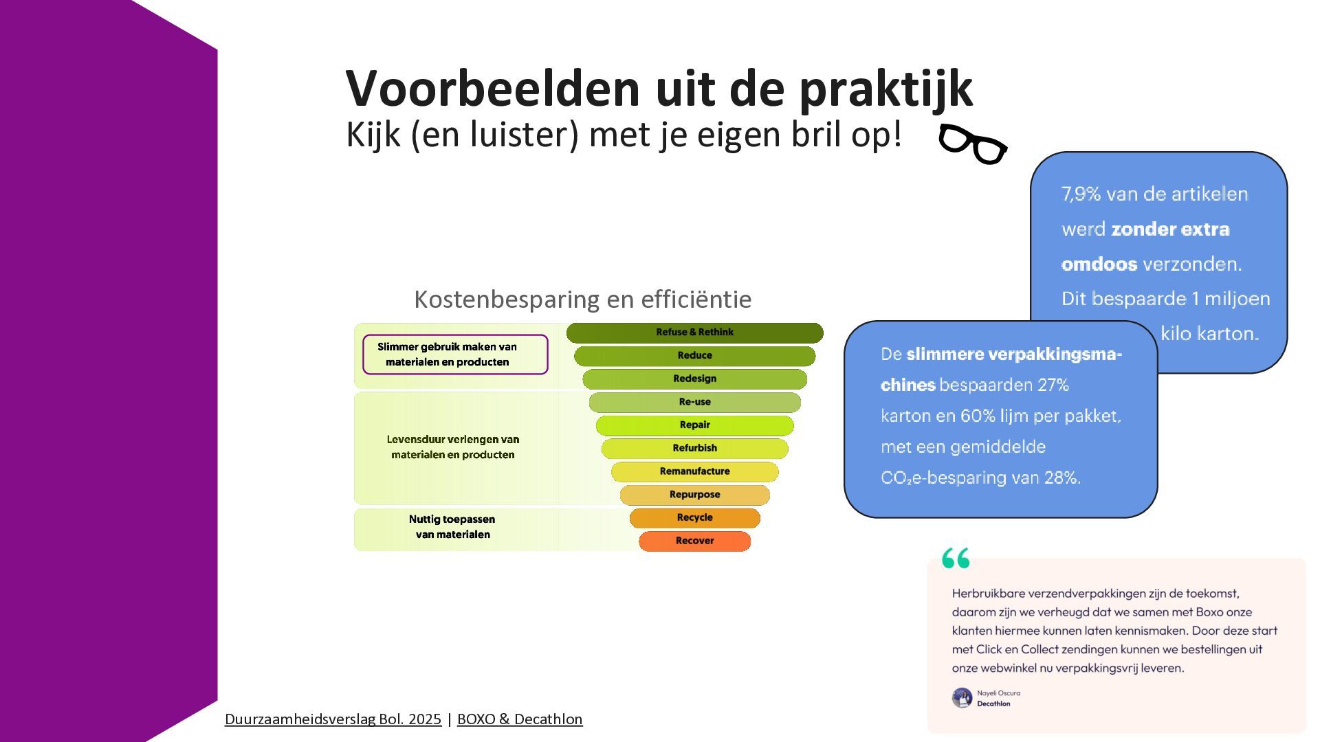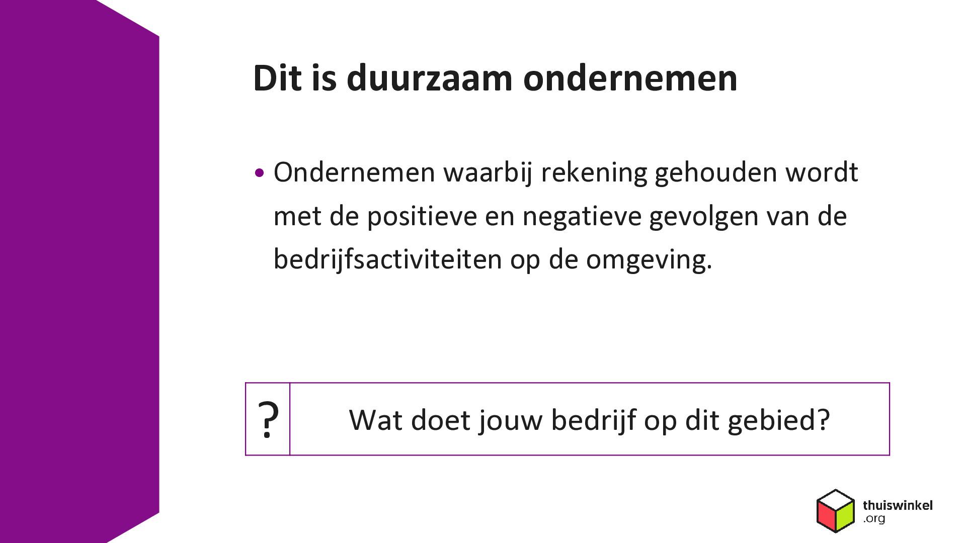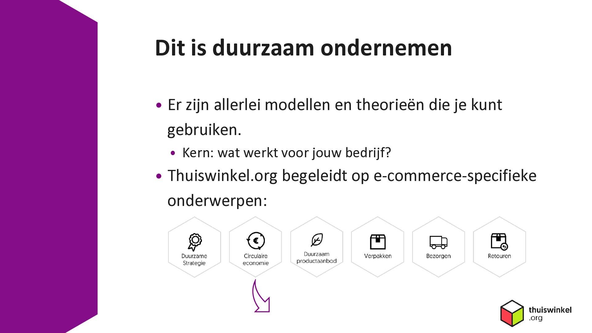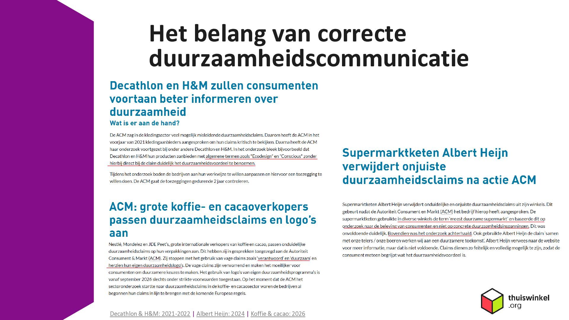 bijv. service, klantbeleving, innovatie, efficiëntie, optimalisatie. Bijvoorbeeld: elke eenmalige verpakking waar jij geen euro aan uitgeeft, hoeft ook niet als afval verwerkt te worden. Eerlijke en specifieke communicatie over duurzaamheid vloeit voort uit je acties: zeg wat je doet en doe wat je zegt. Want: consumenten die duurzaamheidsinformatie zoeken, doen dit in 44% van de gevallen bij jou, de webshop.