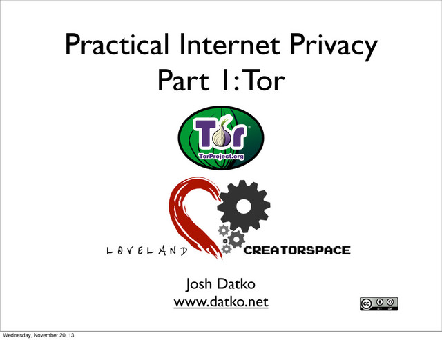 to download, install, run, and verify that Tor is working • Know how to connect to a hidden service • Know where to go to find help with Tor Wednesday, November 20, 13