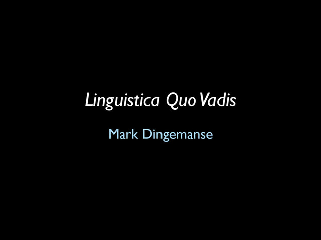 Slides for a brief talk at an informal meeting on the past and future of linguistics. All speakers were asked to reflect on the theme "Linguistics Quo Vadis".