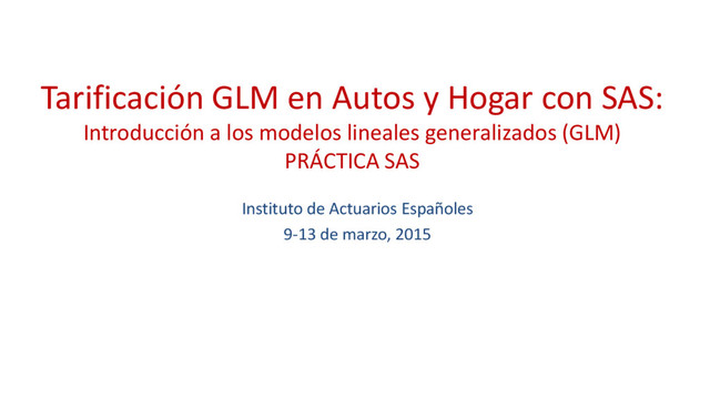 First chapter (practice exercises) of my training for the Spanish Actuarial Institute 5 days course "Generalized Linear Models in Auto and Household Ratemaking using SAS" that I've been teaching during the years 2014 and 2015.