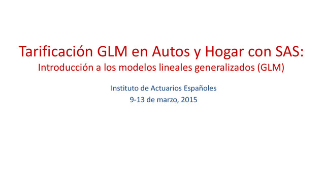 First chapter (theory) of my training for the Spanish Actuarial Institute 5 days course "Generalized Linear Models in Auto and Household Ratemaking using SAS" that I've been teaching during the years 2014 and 2015.