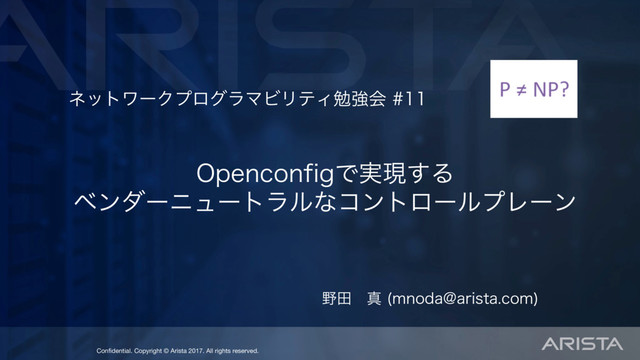 Stream Agent Stream Agent Stream Agent Stream Agent 任意の バックエンド マネージャー OR gRPC ( protobuf ), HTTP, Custom (SDK, scripts), OpenConfig YANG models, RESTCONF, NETCONF σόΠεঢ়ଶͷมԽΛৗʹϦΞϧλΠϜͰετϦʔϛϯά I0330 12:24:14.369867 1538 main.go:139] { "notification": { "path": "/Sysdb/interface/counter/eth/slice/phy/1/intfCounterDir/Ethernet2/intfCounter /current", "timestamp": 1459355071465, "updates": { "statistics/inBroadcastPkts": 133, "statistics/inDiscards": 0, "statistics/inErrors": 0, "statistics/inMulticastPkts": 6137, "statistics/inOctets": 6.438005e+06, "statistics/inUcastPkts": 59373, "statistics/lastUpdate": 33354.156630007, "statistics/outBroadcastPkts": 1, "statistics/outDiscards": 0, "statistics/outErrors": 0, "statistics/outMulticastPkts": 6066, "statistics/outOctets": 6.038559e+06, "statistics/outUcastPkts": 60501 } } ྫɿΠϯλʔϑΣΠεͷΧϯλʔͷετϦʔϛϯάσʔλ ωοτϫʔΫσόΠεͷෛՙΛ͑ͳ͕ΒɺϦΞϧλΠϜͷՄࢹੑΛ࣮ݱ