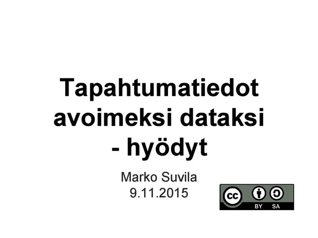 Tapahtumatiedot avoimeksi dataksi - hyödyt Marko Suvila 9.11.2015