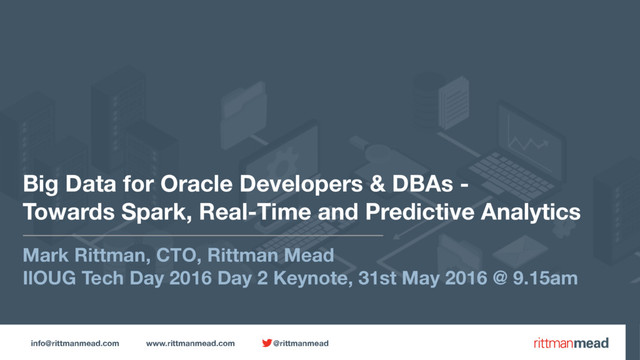Most Oracle DBAs and developers associate Hadoop and Big Data technologies with cheap offload storage and processing for their data warehouse, but recent advances in the platform bring in-memory, real-time analytics capabilities to Hadoop along with machine learning, predictive modeling and automatic schema detection - all of which will eventually make their way to Oracle Big Data Appliance. Come and hear what these new technologies can bring to your Oracle Big Data and Data Warehousing platforms.