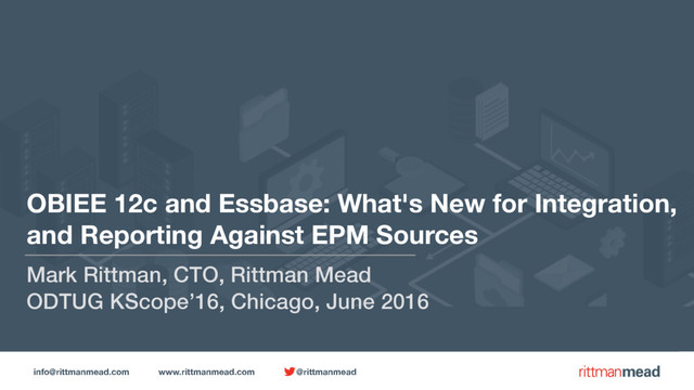 OBIEE 12c has some interesting new features around Essbase integration, including improvements around using Essbase as a query acceleration layer and general improvements around usability and RPD/Outline integration. Come to this session to see what they are, how they affect OBIEE/Essbase integration, and where this initiative may be going over time.