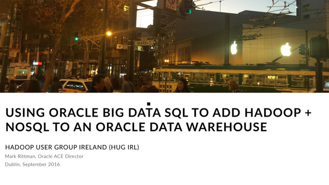 Oracle Database 12c, Oracle Exadata Database Machine •Extends Oracle Data Dictionary to cover Hive •Extends Oracle SQL and SmartScan to Hadoop •Extends Oracle Security Model over Hadoop •Fine-grained access control •Data redaction, data masking ‣Uses fast c-based readers where possible (vs. Hive MapReduce generation) ‣Map Hadoop parallelism to Oracle PQ ‣Big Data SQL engine works on top of YARN •Like Spark, Tez, MR2 Oracle Big Data SQL 15 Exadata Storage Servers Hadoop Cluster Exadata Database Server Oracle Big Data SQL SQL Queries SmartScan SmartScan