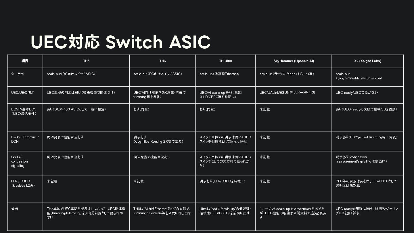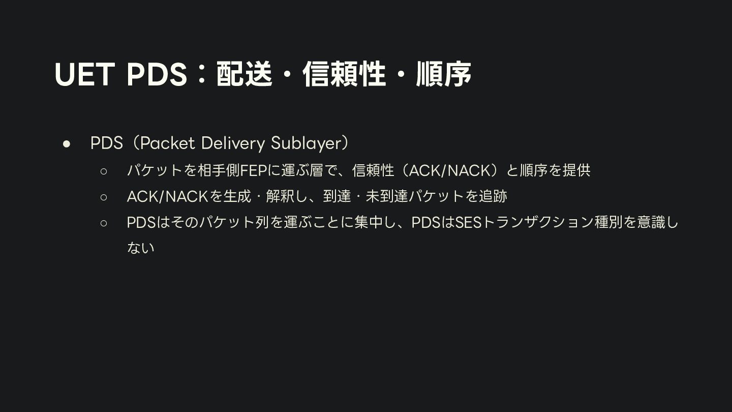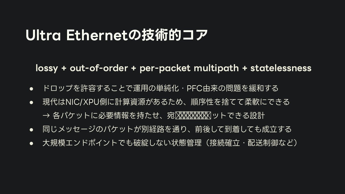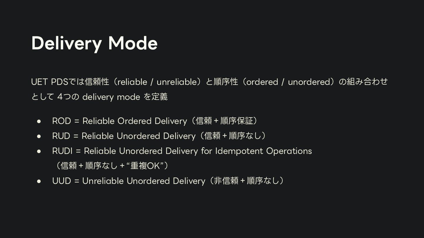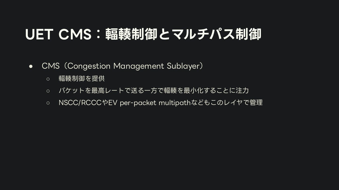 • AI Base:*CCL, UDのサポート • AI Full:学習と推論アプリケーション • HPC:広範なHPCアプリケーション OFA 2025 Webinar Series Webinar #1 - Libfabric: Getting Started with Ultra Ethernet https://www.youtube.com/watch?v=cgiGbny5vdo