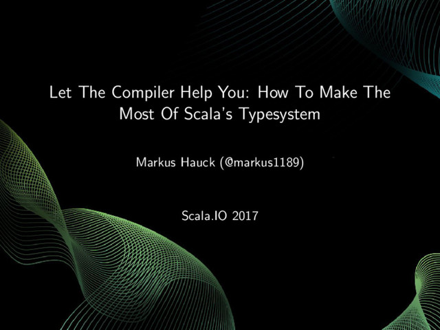 [email protected]") > Email.fromString("Hello World") res2: Either[ValidationError, Email] = Left(InvalidEmail) Markus Hauck (@markus1189) Let The Compiler Help You: How To Make The Most Of Scala’s Typesyste 26 / 61