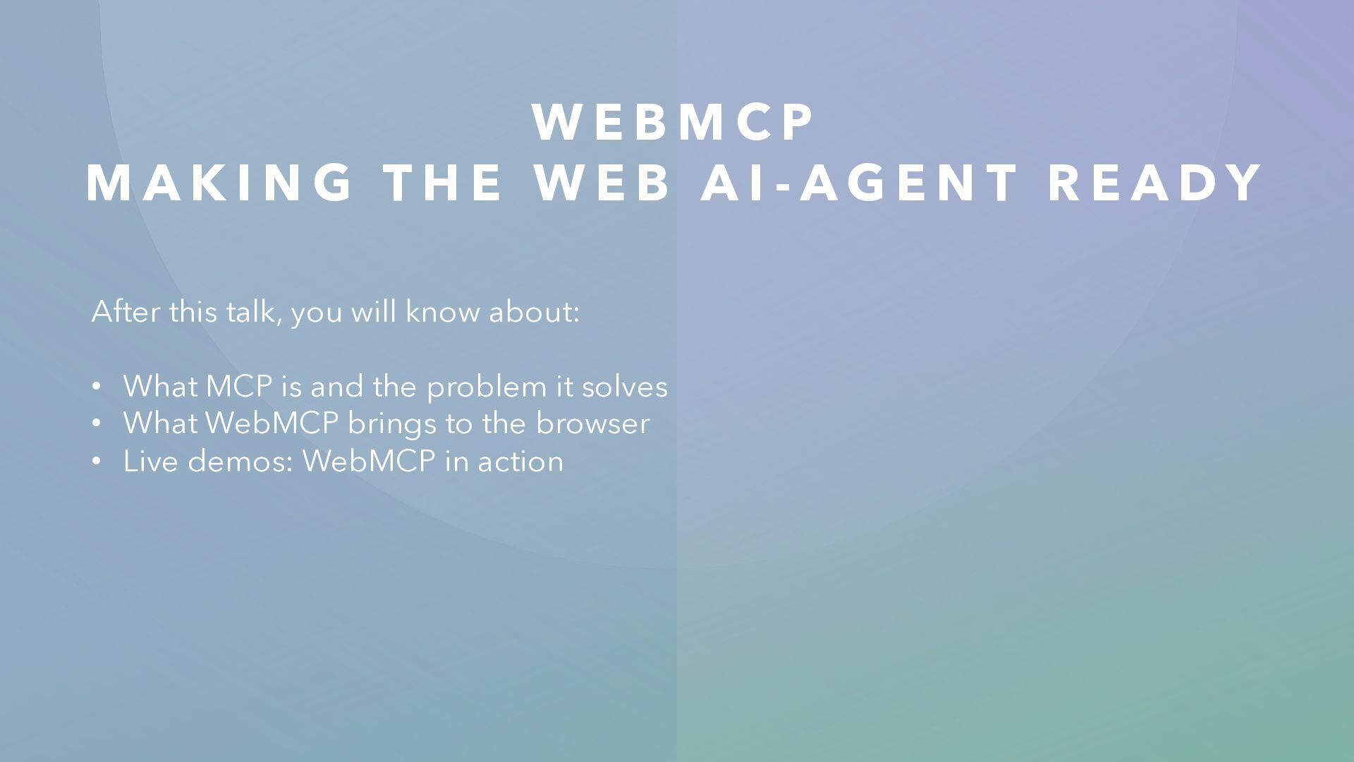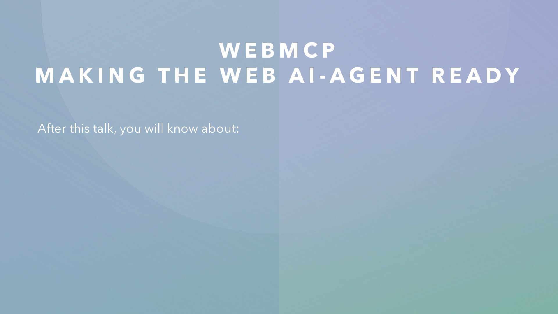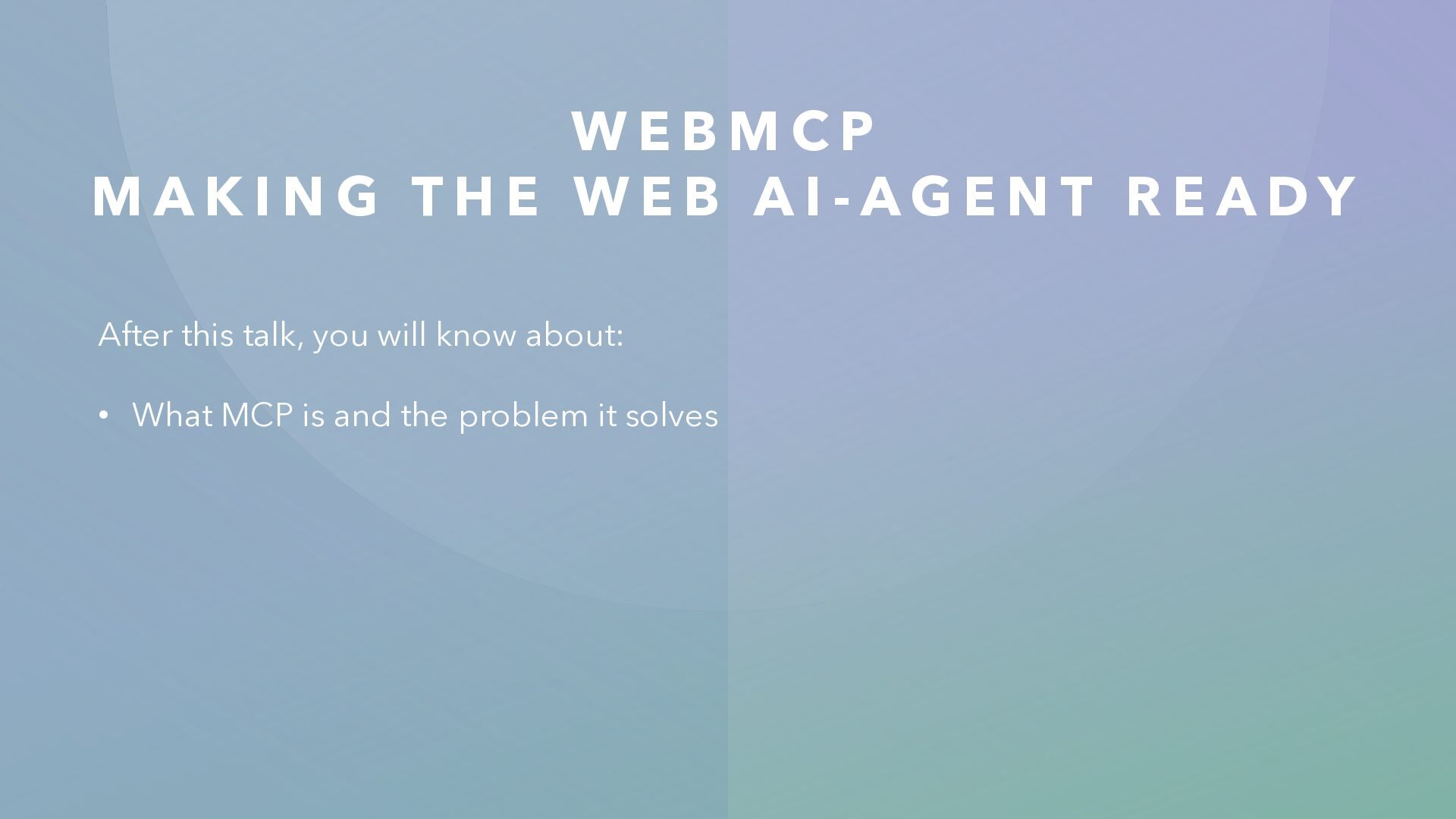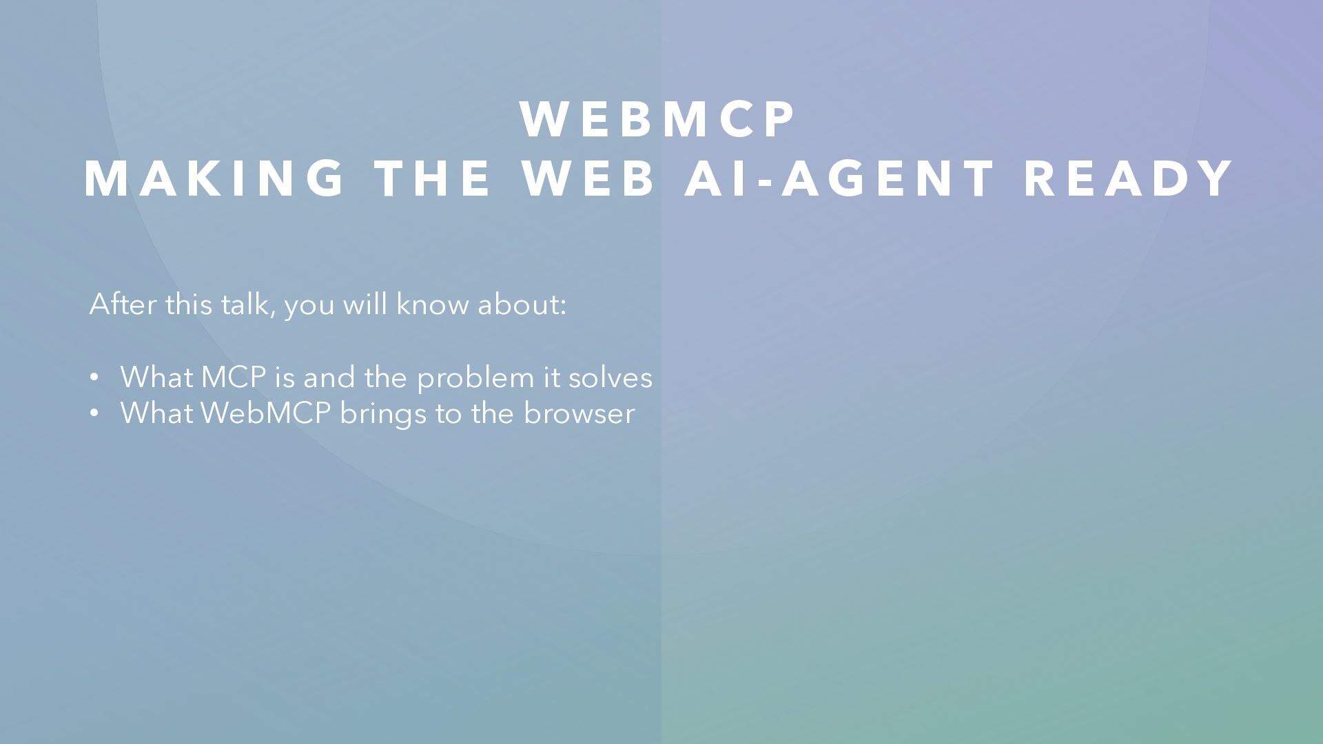 N G T H E W E B A I - A G E N T R E A D Y After this talk, you will know about: • What MCP is and the problem it solves • What WebMCP brings to the browser
