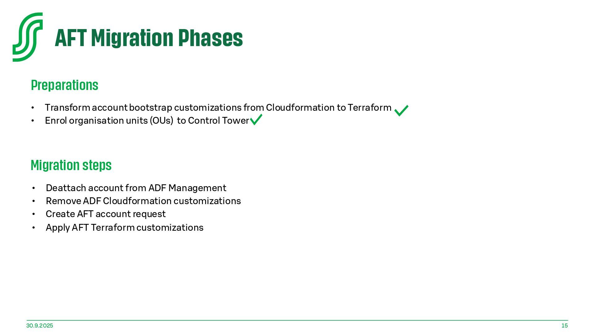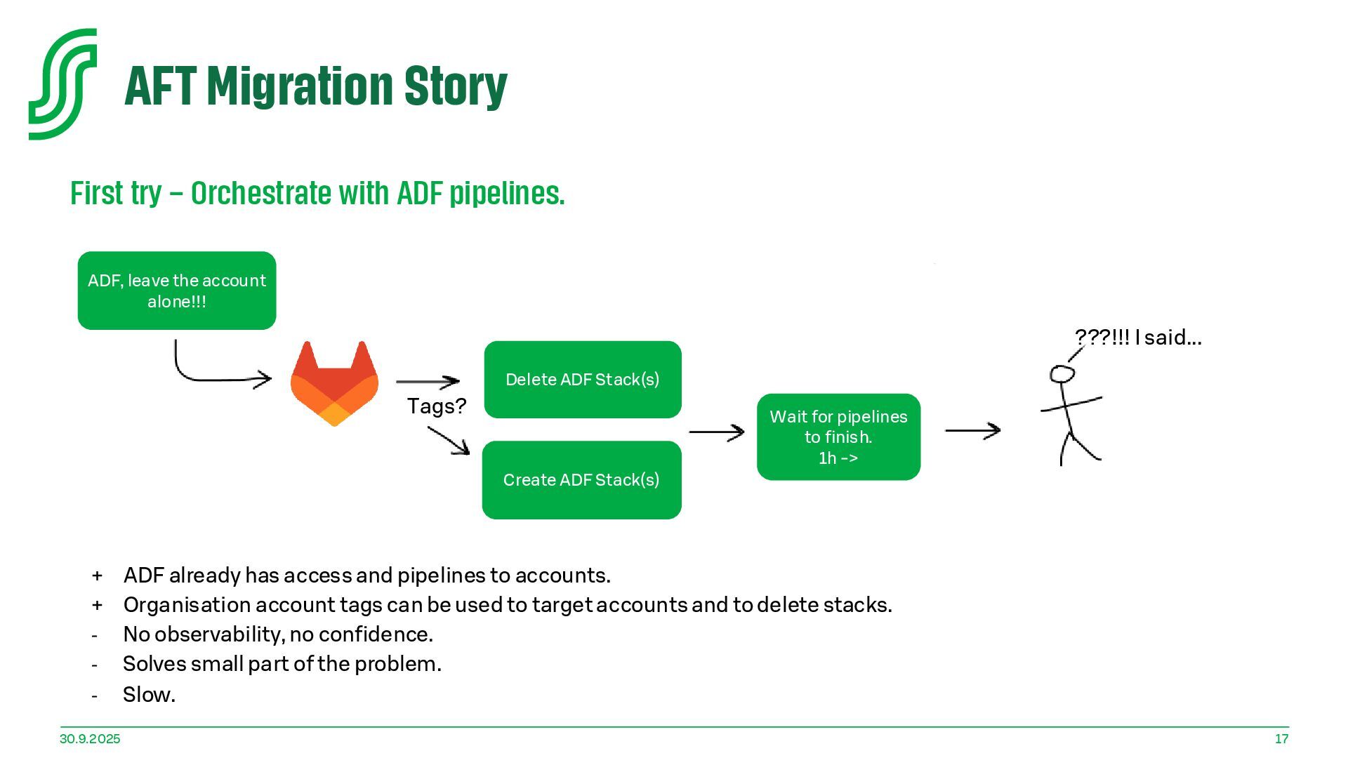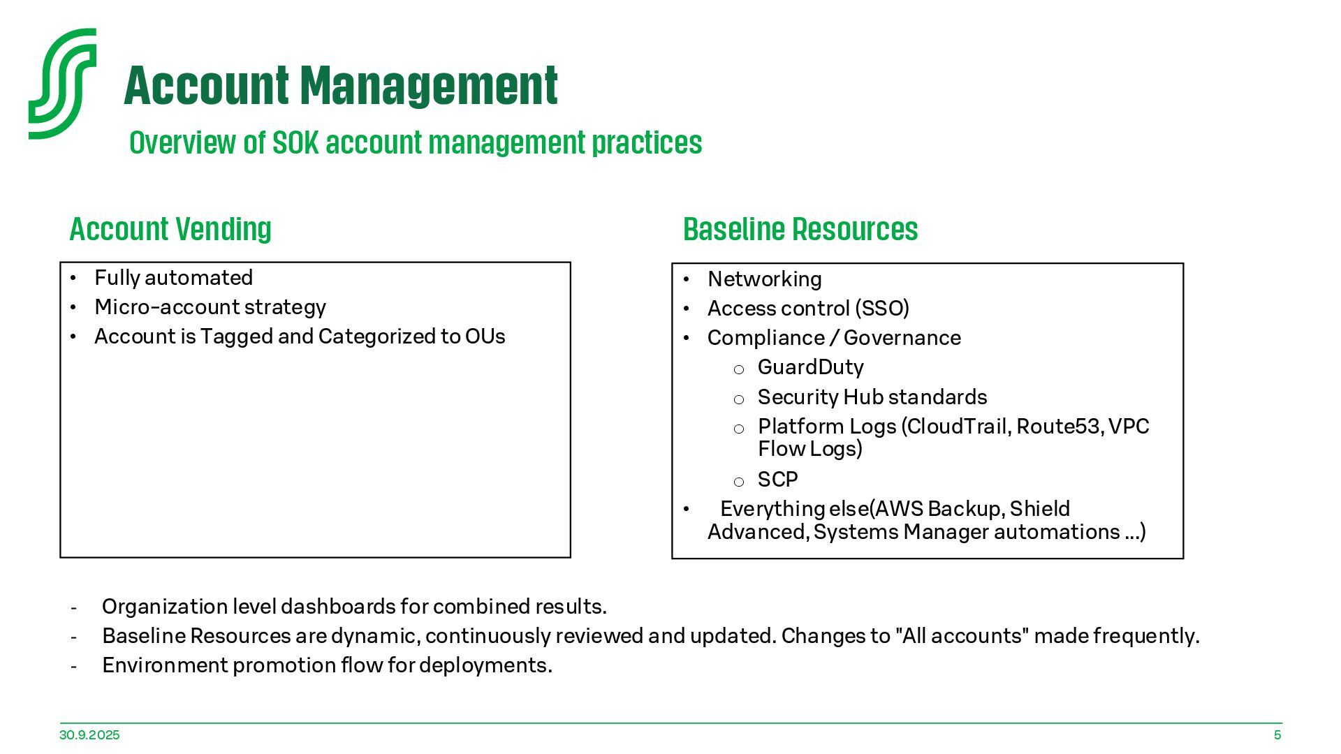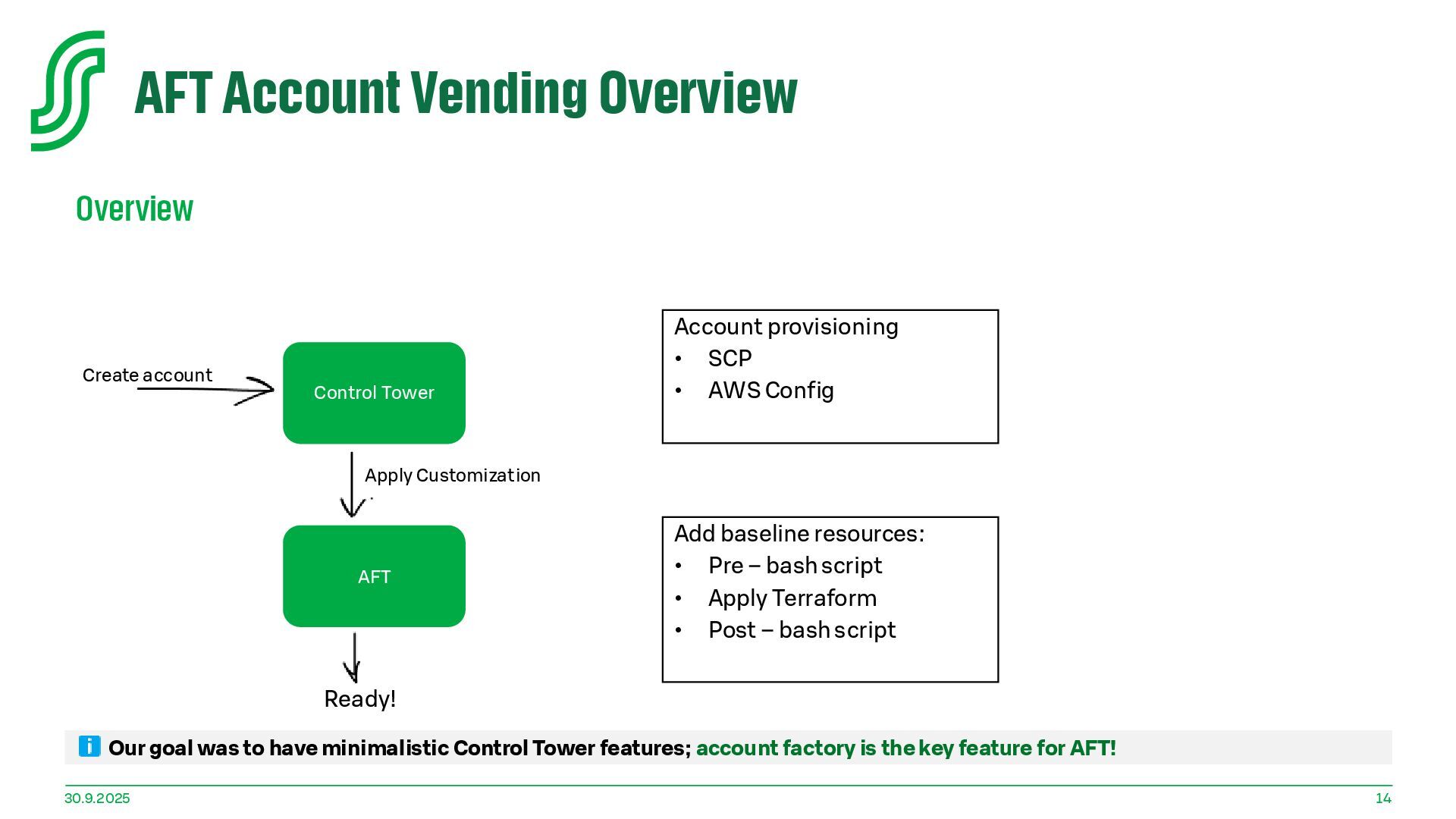 Managing hundreds of AWS accounts is no small task—especially when the tooling behind it is brittle and officially unsupported. In this session, you’ll hear how SOK AWS Platform team is migrating from an aging deployment platform to AWS Account Factory for Terraform (AFT), the modern, officially supported way to manage AWS accounts at scale.