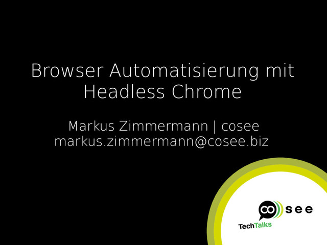 Musste man früher noch Websites manuell testen, kann man sich heutzutage das Leben durch automatisierte Tests leichter machen. Die Tests lassen sich im Browser durchführen und durch Headless Browser sogar mit wenig Ressourcen und ohne graphische Oberfläche. Seit Mitte des Jahres ist das nun auch mit dem aktuellen Chrome möglich. In diesem Lightning Talk werden wir kurz über die Vorteile von Headless Browser sprechen und zeigen, wie du deine Website testest und währenddessen davon noch Screenshots machst.