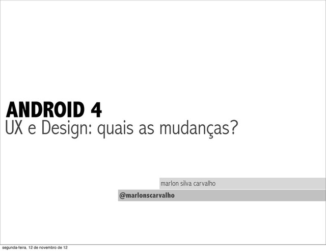 Slides apresentados no evento de lançamento do GDG Salvador. Aborda as mudanças de Design e UX que ocorreram a partir da versão 4 do Android.