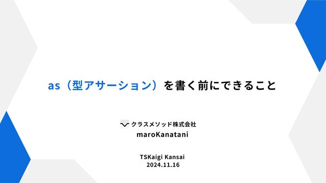 クラスメソッド株式会社 TSKaigi Kansai 2024.11.16 as(型アサーション)を書く前にできること maroKanatani