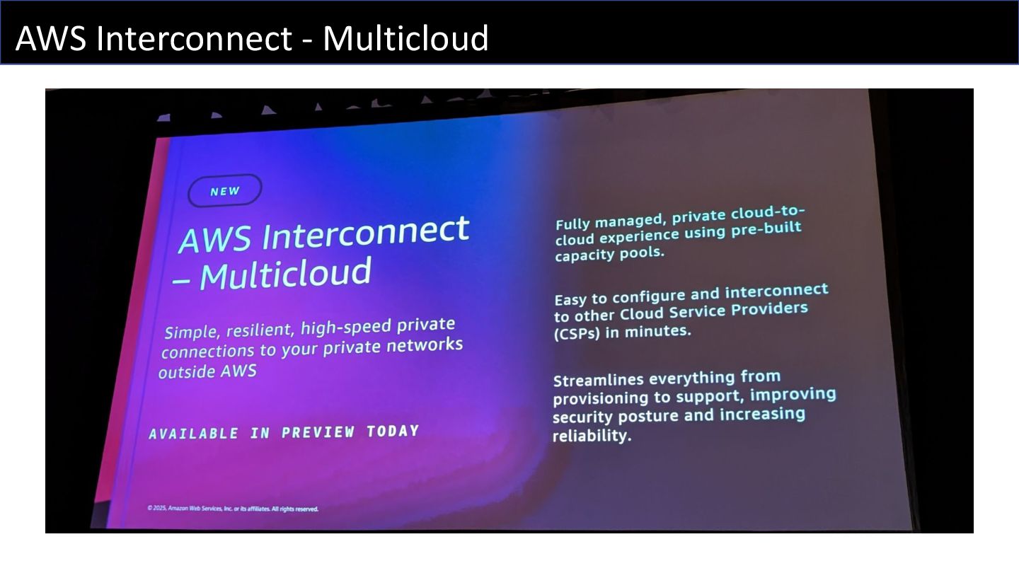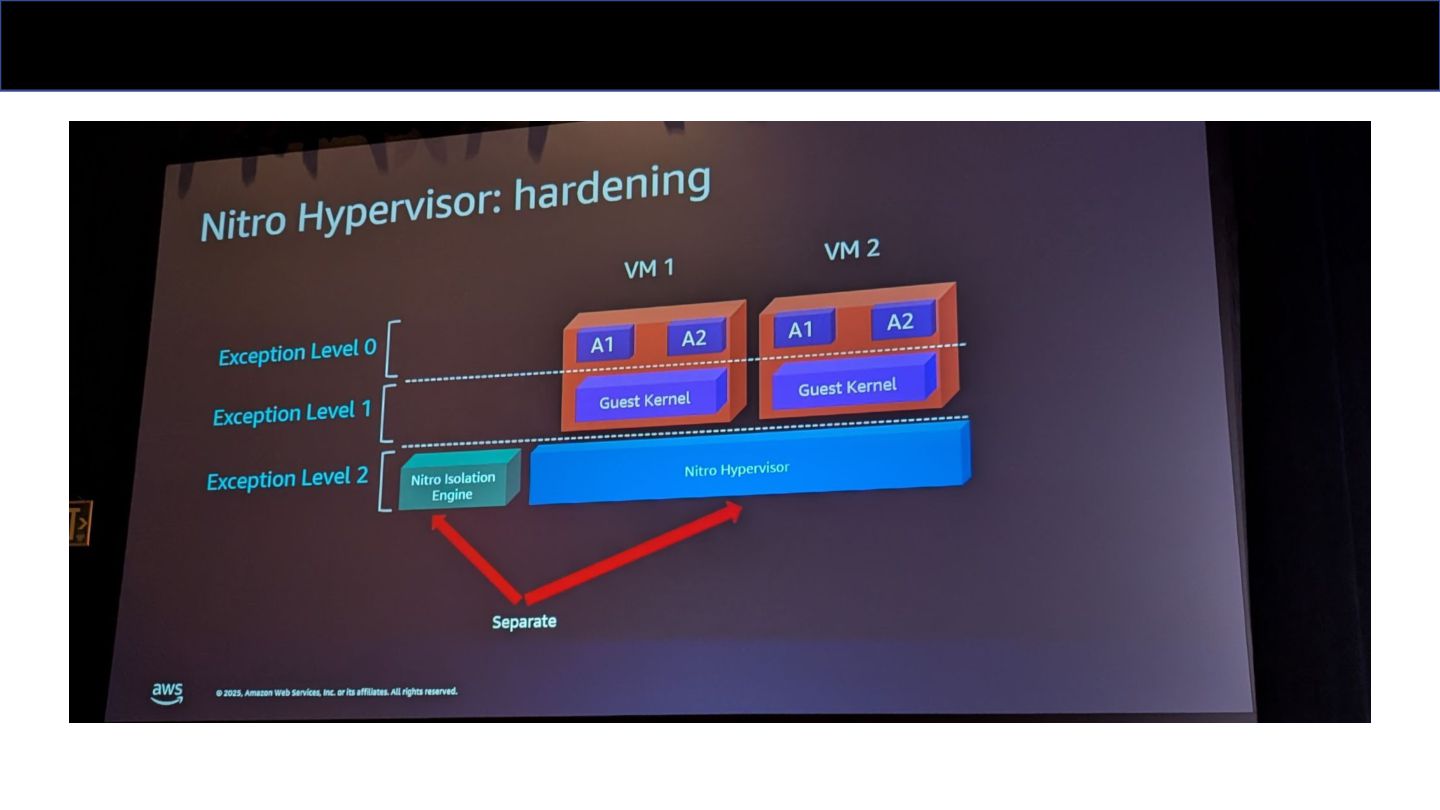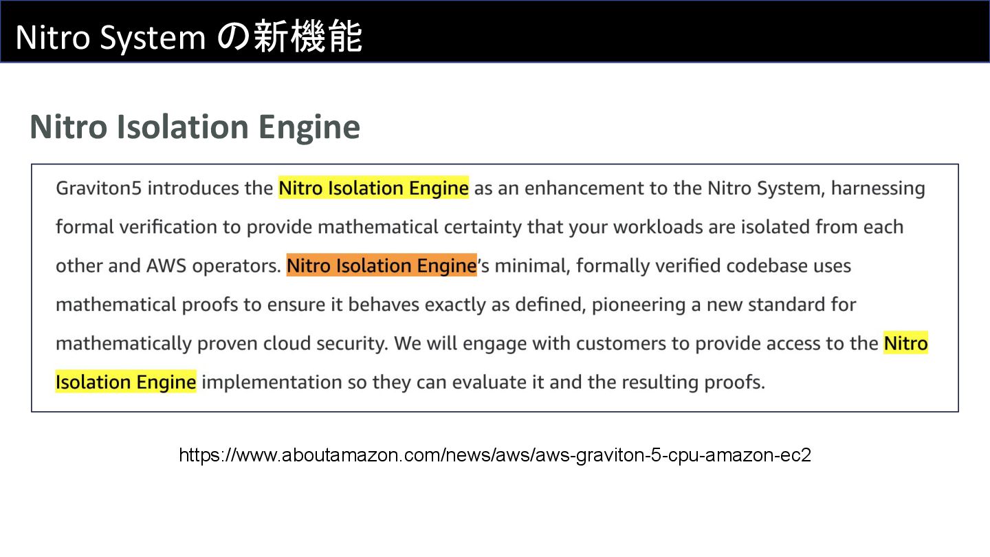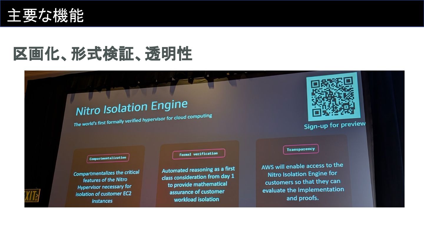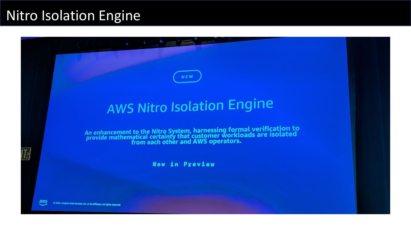 AWS Interconnect - multicloud とか、Deep Dive セッションなのに Aurora Limitless Database について触れられなかったとか、Nitro の新しい機能である Nitro Isolation Engine の話などをしました。