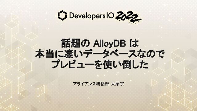 話題の AlloyDB は 本当に凄いデータベースなので プレビューを使い倒した アライアンス統括部 大栗宗
