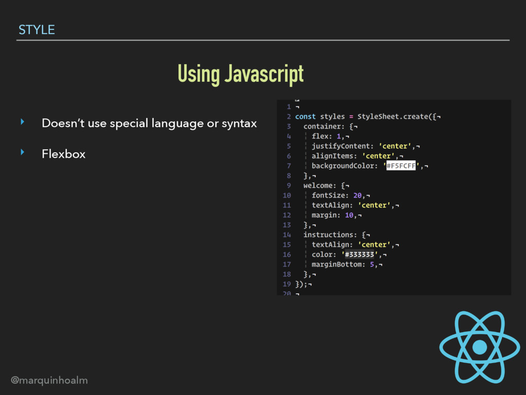 @marquinhoalm ‣ Doesn’t use special language or syntax ‣ Flexbox