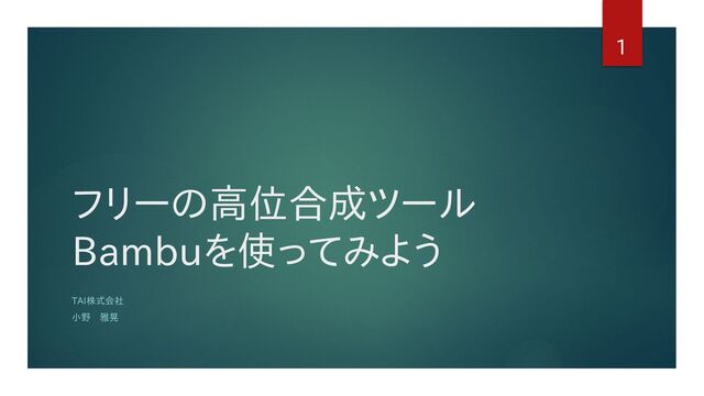 1 フリーの高位合成ツール Bambuを使ってみよう TAI株式会社 小野 雅晃