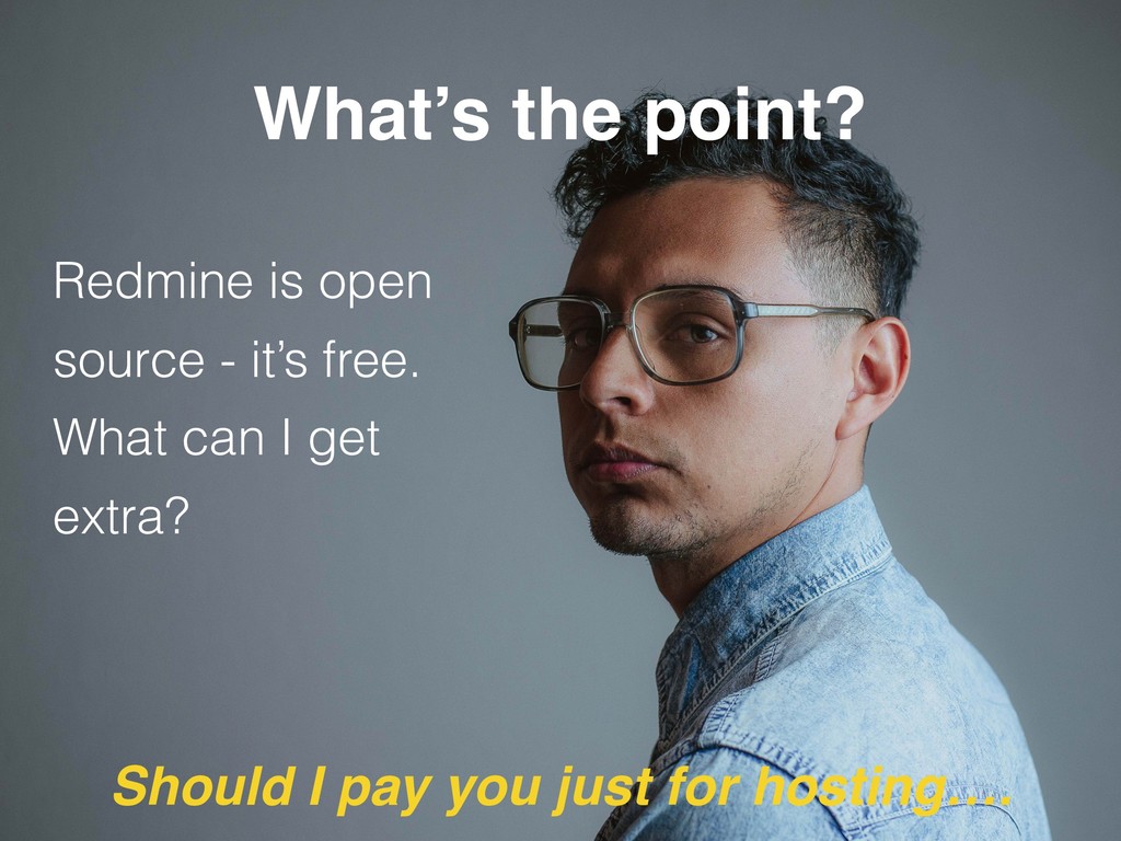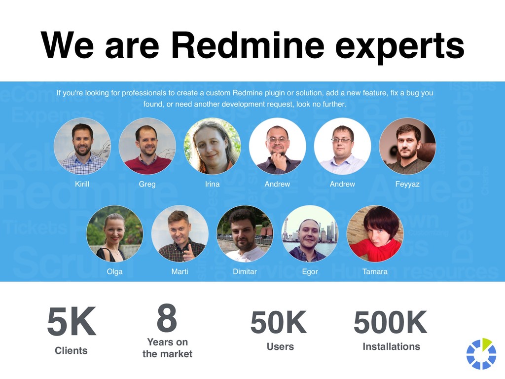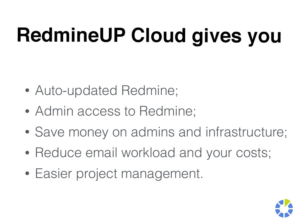 Redmine itself - is the most popular open source task tracker system. We took Redmine, upgraded it with 15 premium plugins, put it all on the best cloud infrastructure and hire Redmine experts to maintain it. Check how it looks and works now.