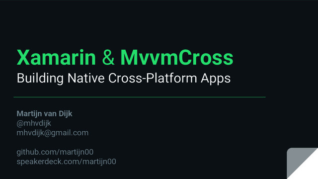 advanced Mvvm library for Xamarin / .NET cross platform ▪ Large and engaged community ▪ Fast release cycle ▪ Clean and easy conventions ▪ Used by many enterprise companies e.g: - Microsoft - Xamarin inc. - Dutch government - Olo - Nokia