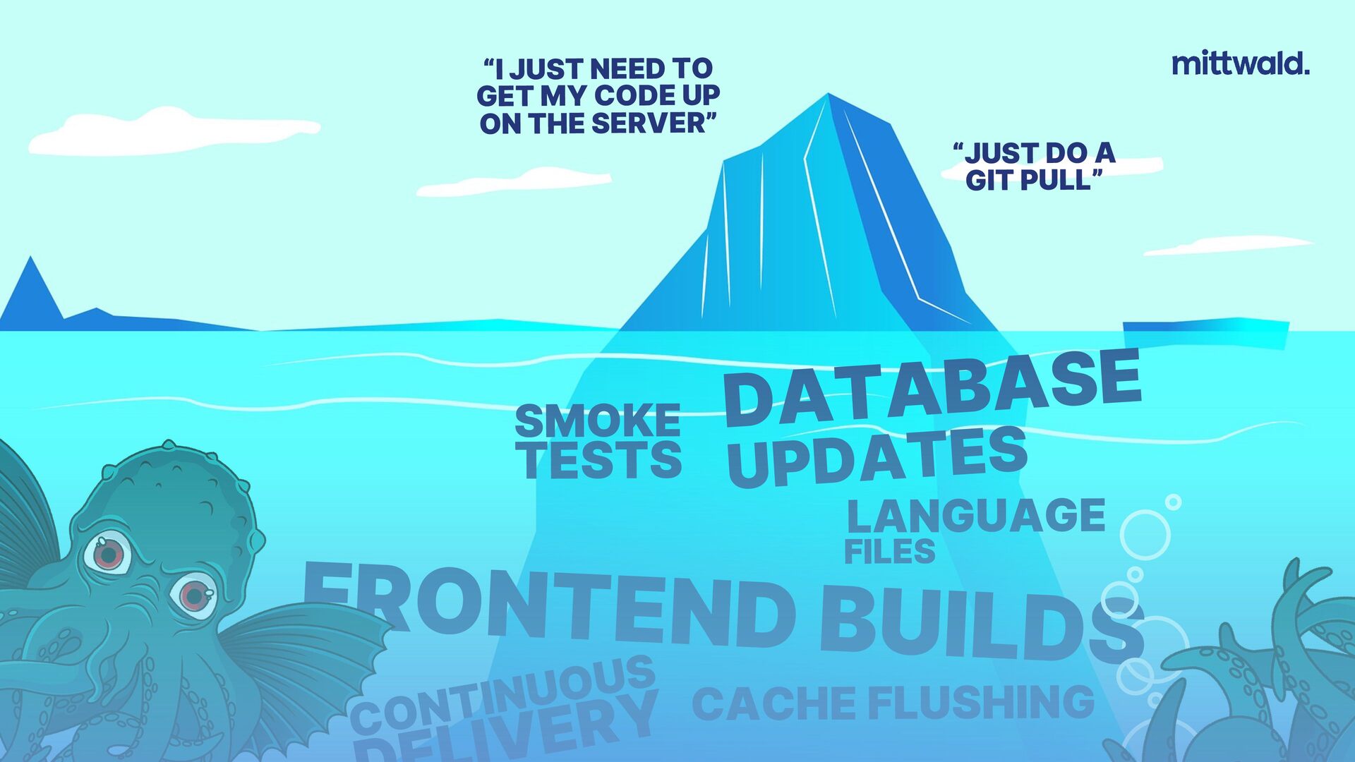 High degree of customization, large team, custom solutions _ Compliance requirements? SBOMs? à Containers, Kubernetes _ Short-lived and/or infrequently updated sites _ Standardization, no/minimal customization _ Small ops budget, small team, focus on agency core business? à Managed solutions, Auto-updates, SFTP upload HERE BE DRAGONS