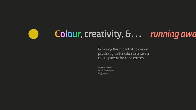A past talk exploring the impact of colour on creative psychological function. Based on colour research, I present the ongoing development of a coding environment colour palette to help designers and developers improve their creativity and productivity.