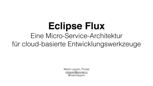 Eclipse Flux Eine Micro-Service-Architektur für cloud-basierte Entwicklungswerkzeuge Martin Lippert, Pivotal