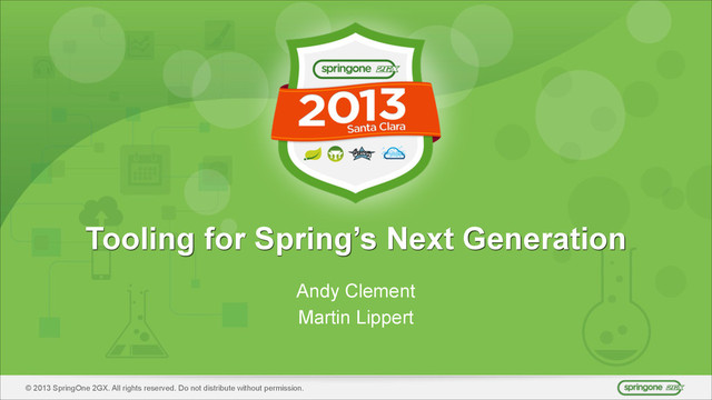The Spring Tool Suite (STS) is constantly evolving to keep pace with developments in Spring as well as the larger world of enterprise application development. This talk focuses on Eclipse-based tooling for the latest features throughout the Spring ecosystem. With plenty of live demos, we'll show you how to get productive quickly with Spring and STS. We''ll start with reviewing areas including XML-free Spring development and then look at early support for specific Spring's next generation features. We'll also demo the Eclipse support for Java 8 (also AspectJ support for Java 8) and spend some time looking at how this enhances your Spring development experience.