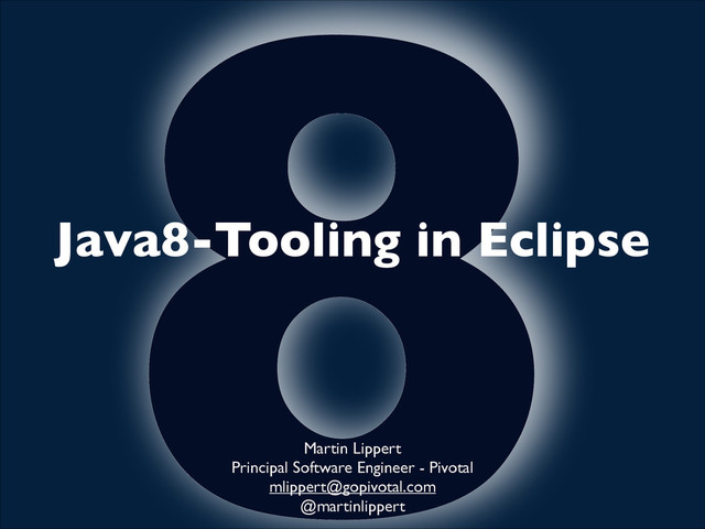 available: ! Go and download Eclipse 4.3.1 or 4.4M2 install patch from this update site: http://dist.springsource.com/snapshot/TOOLS/java8/e43 ! (this patch is building continuously from the BETA_JAVA8 branch of the JDT projects)