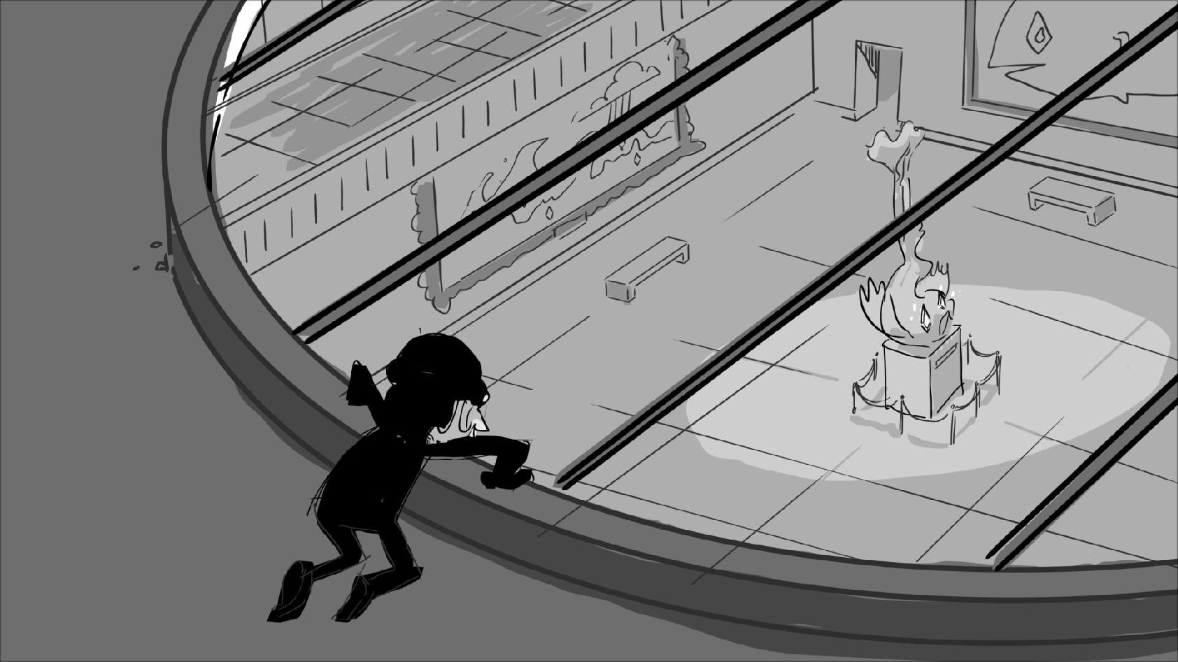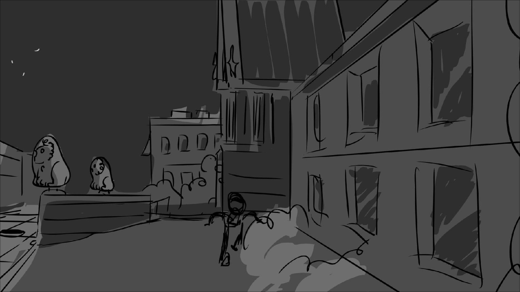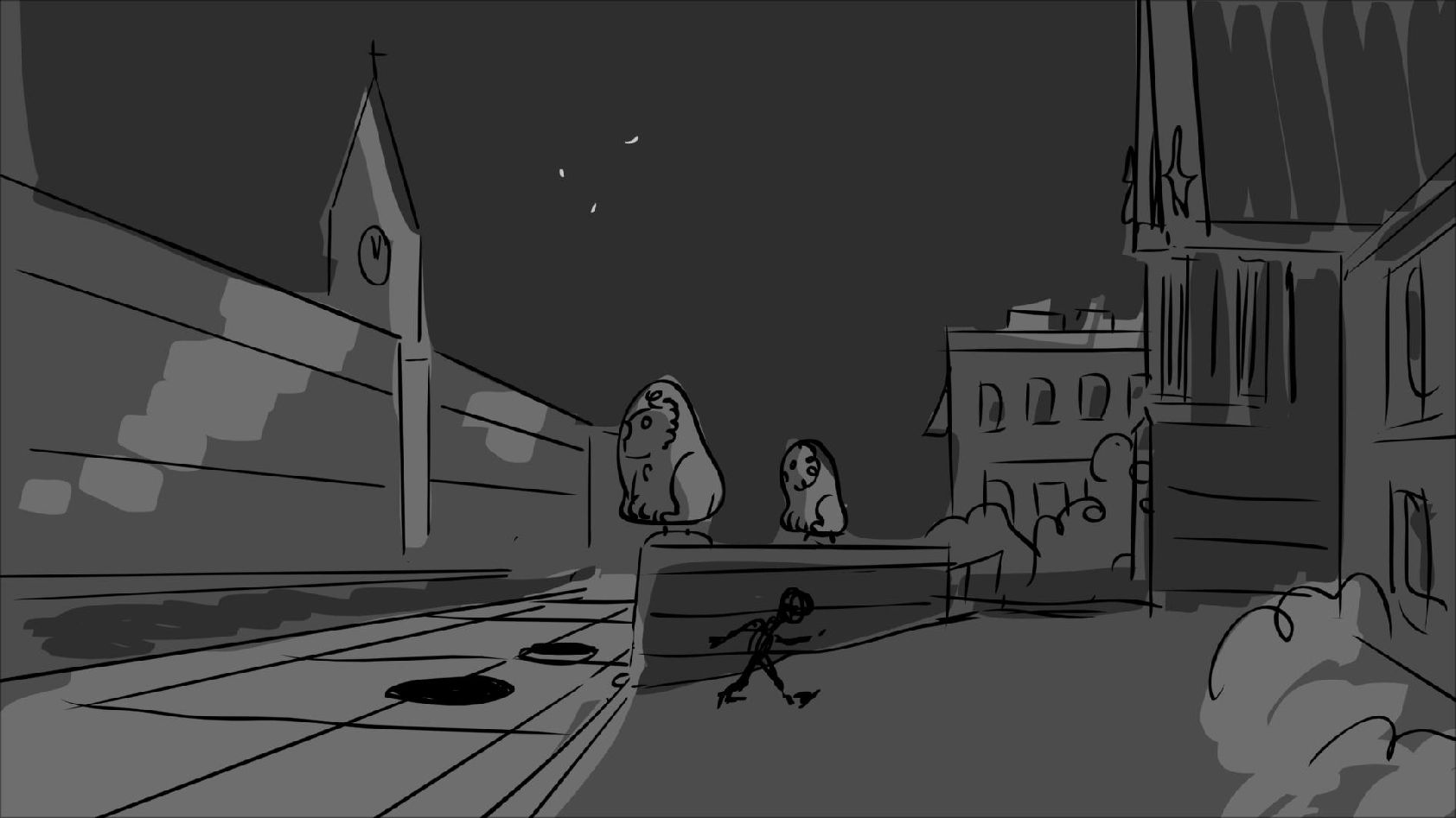 Storyboard panels adapted from a script by Mike Kunkel for his storyboarding workshops. www.martinewills.com