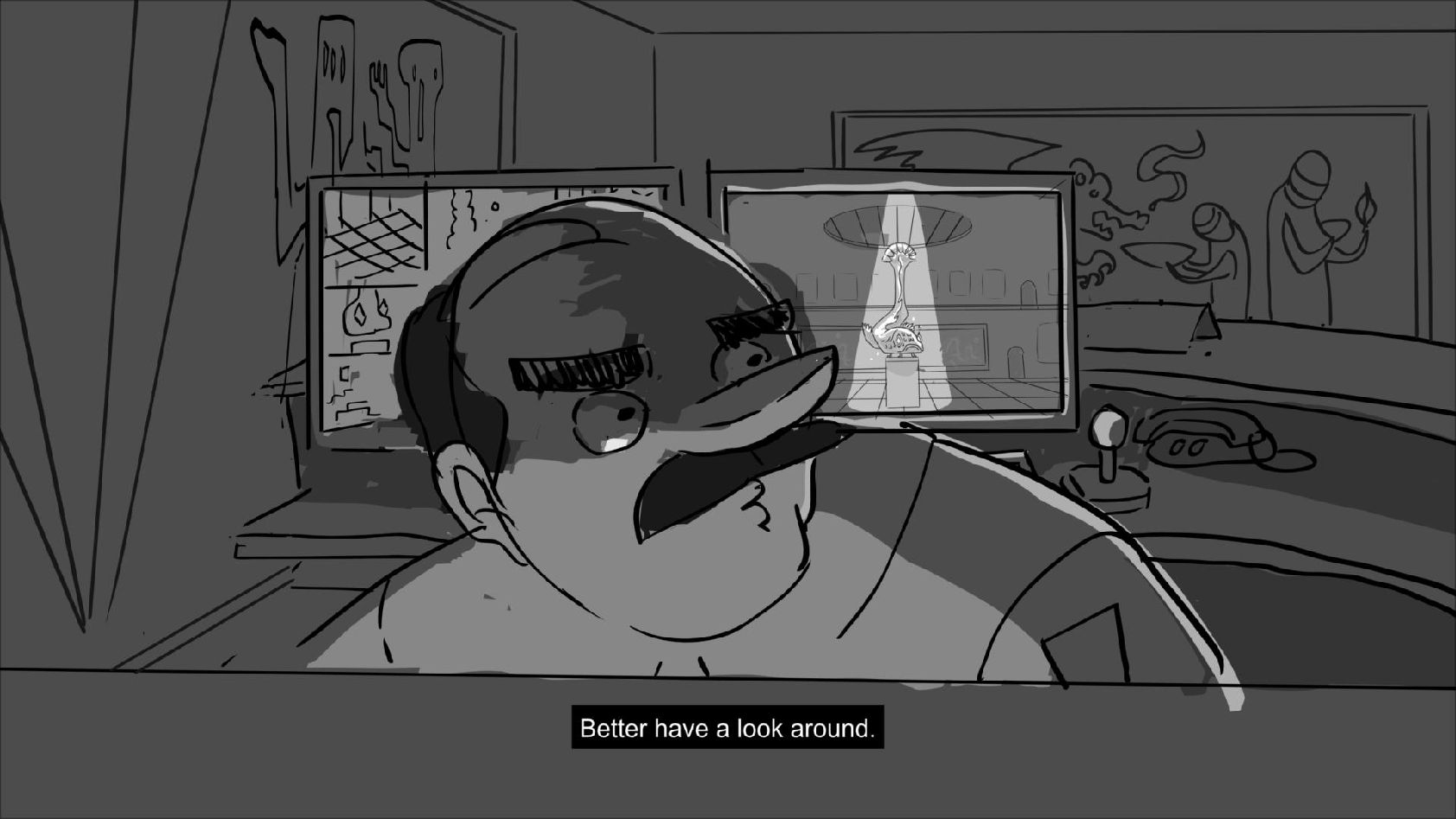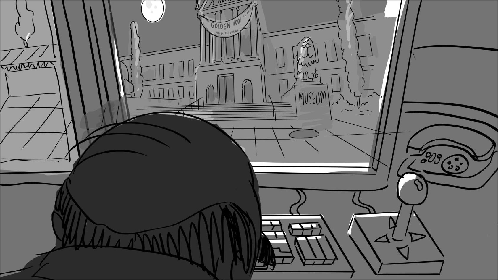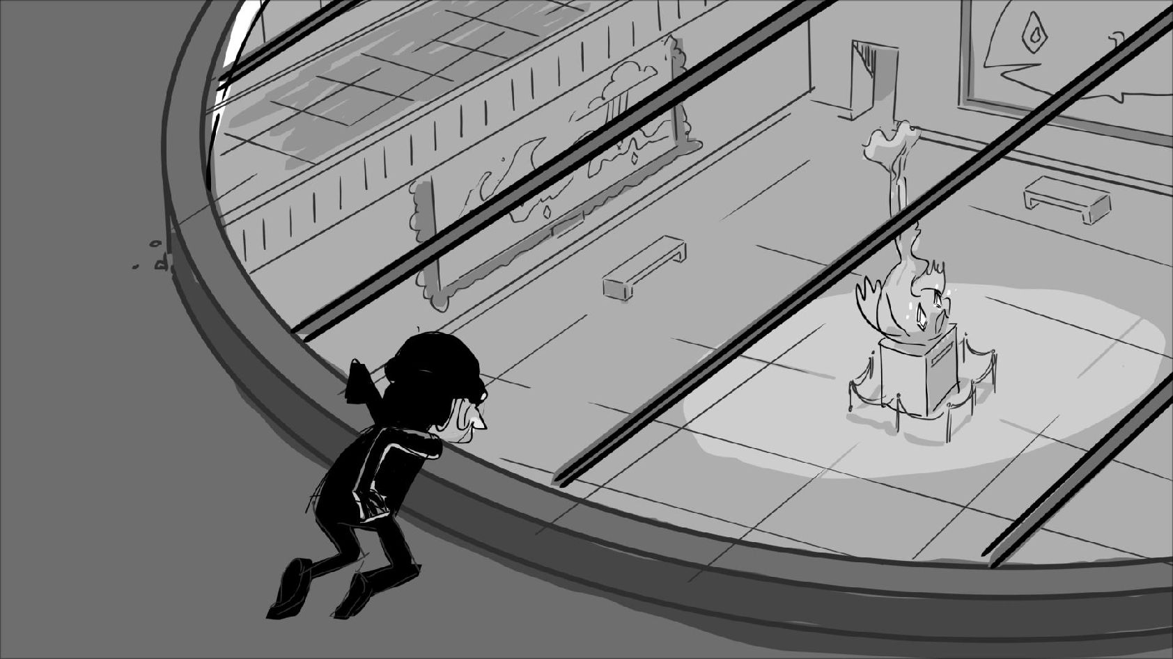 Storyboard panels adapted from a script by Mike Kunkel for his storyboarding workshops. www.martinewills.com