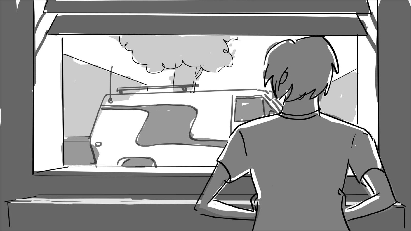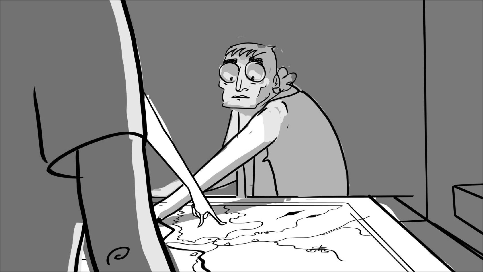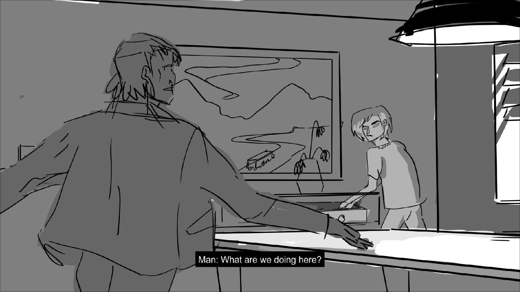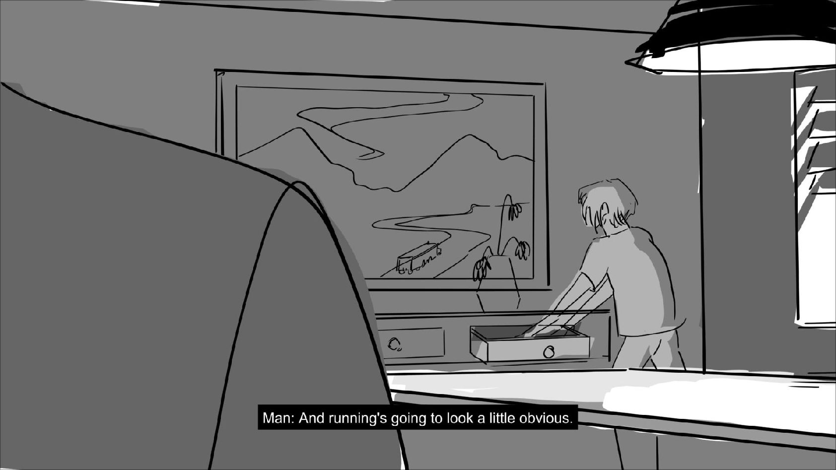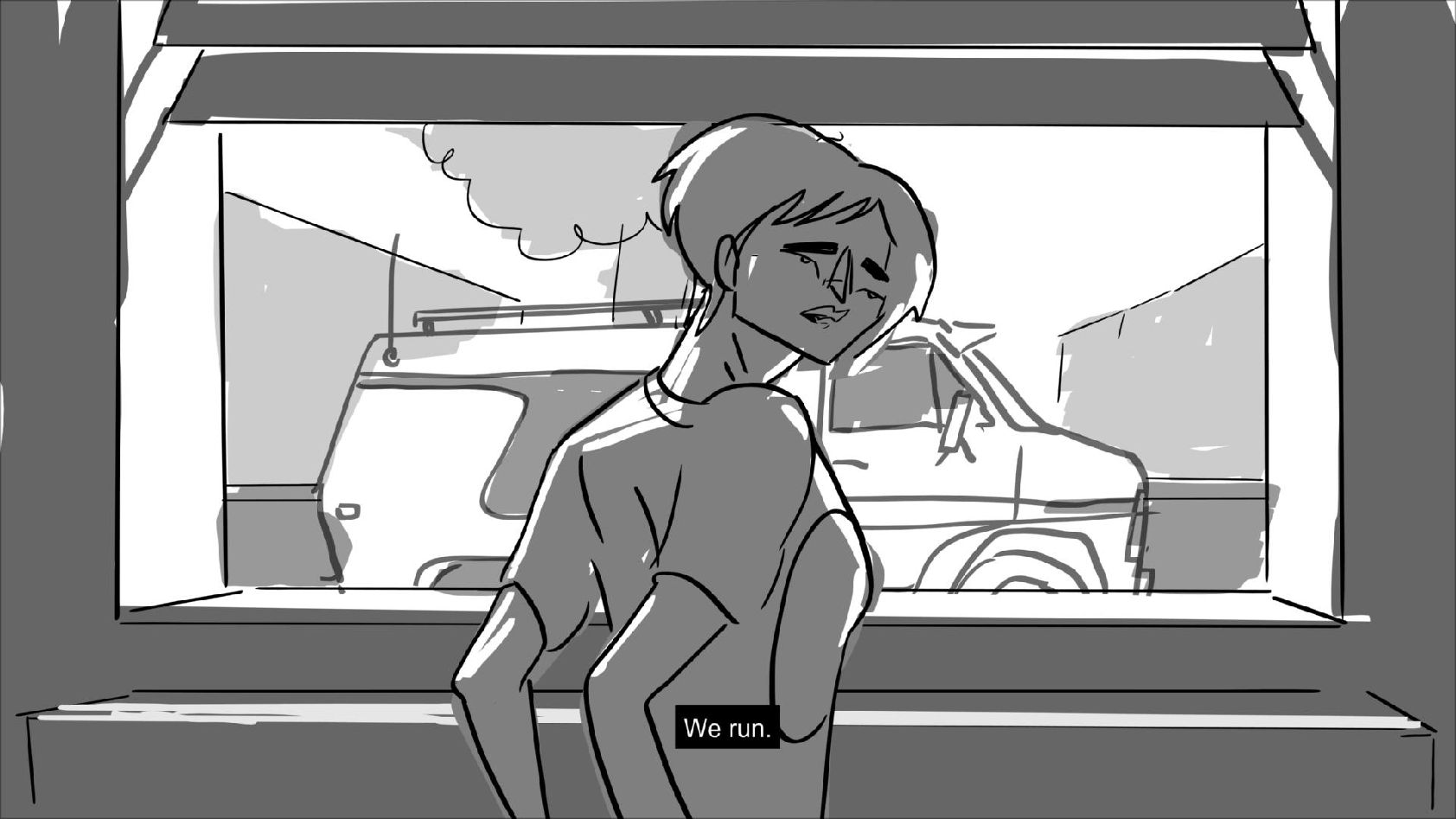 Storyboard of a scene from a larger project. I had beatboards for a larger story to flesh out and challenged myself to board the conversation that happens before the escape, rather than the escape itself. www.martinewills.com