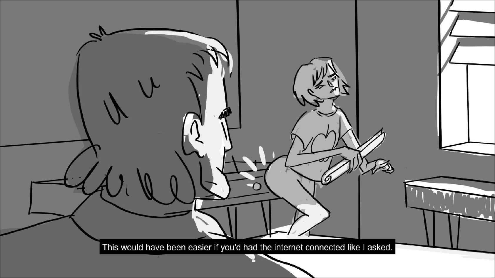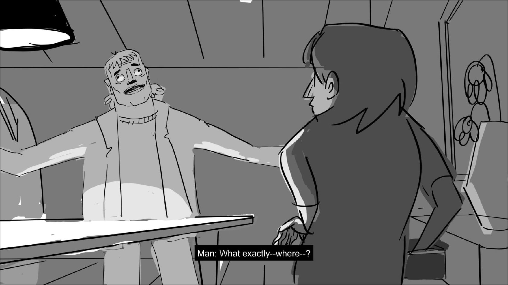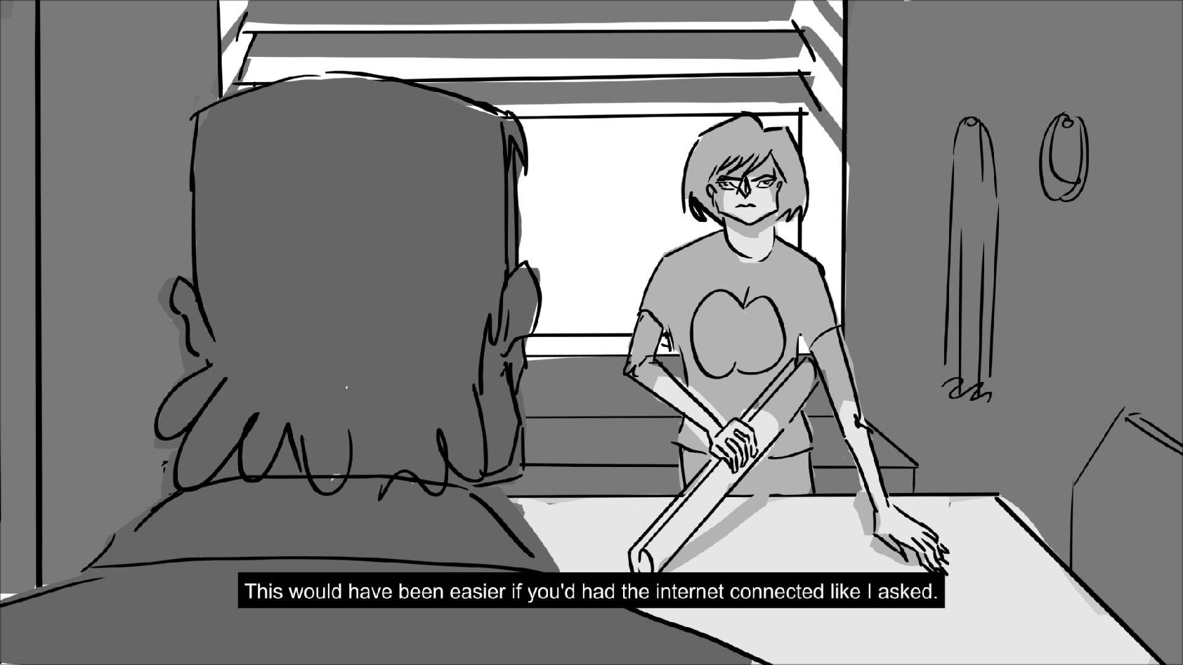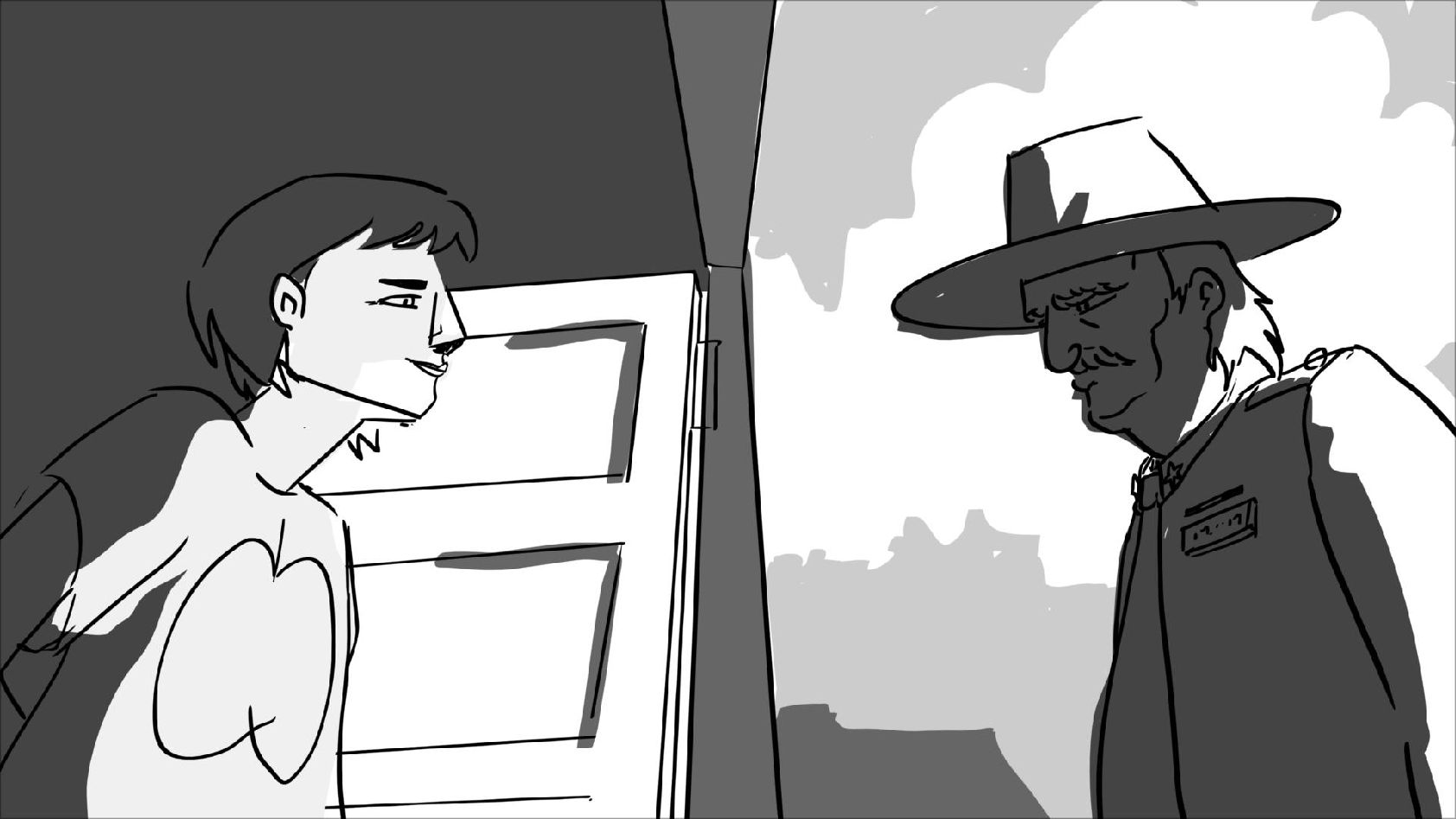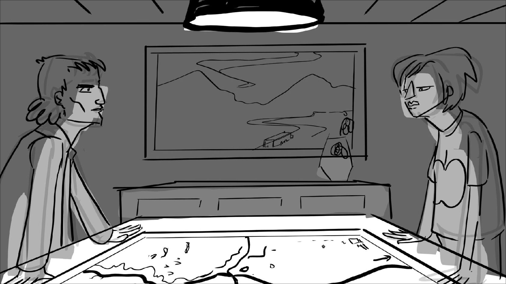 Storyboard of a scene from a larger project. I had beatboards for a larger story to flesh out and challenged myself to board the conversation that happens before the escape, rather than the escape itself. www.martinewills.com