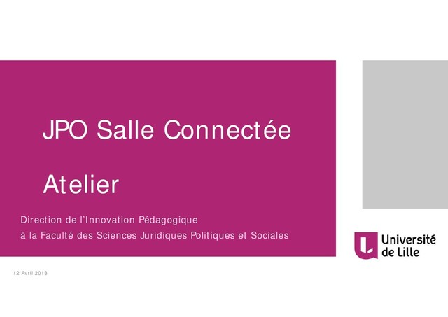 2-15 et ses possibilités techniques Expérimenter une animation adaptée à cette salle Découvrir des scénarios pédagogiques possibles pour cette salle S’approprier l’un des scénarios 12 Avril 2018 Journée Portes Ouvertes Salle Connectée - Direction de l'Innovation Pédagogique 4
