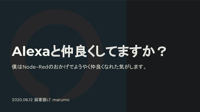 Alexaと仲良くしてますか? 僕はNode-Redのおかげでようやく仲良くなれた気がします。 2020.06.12 誤家庭LT marumo
