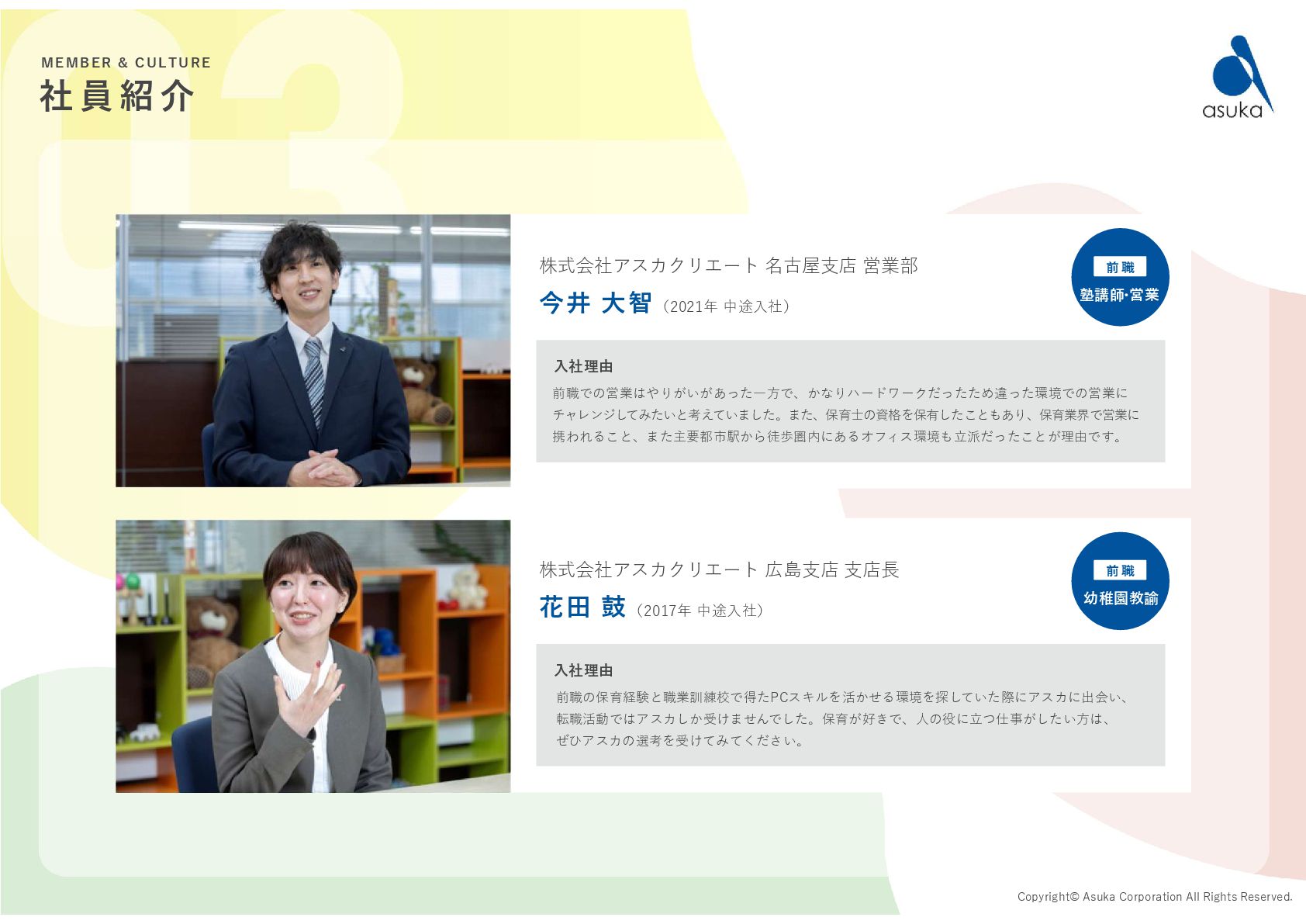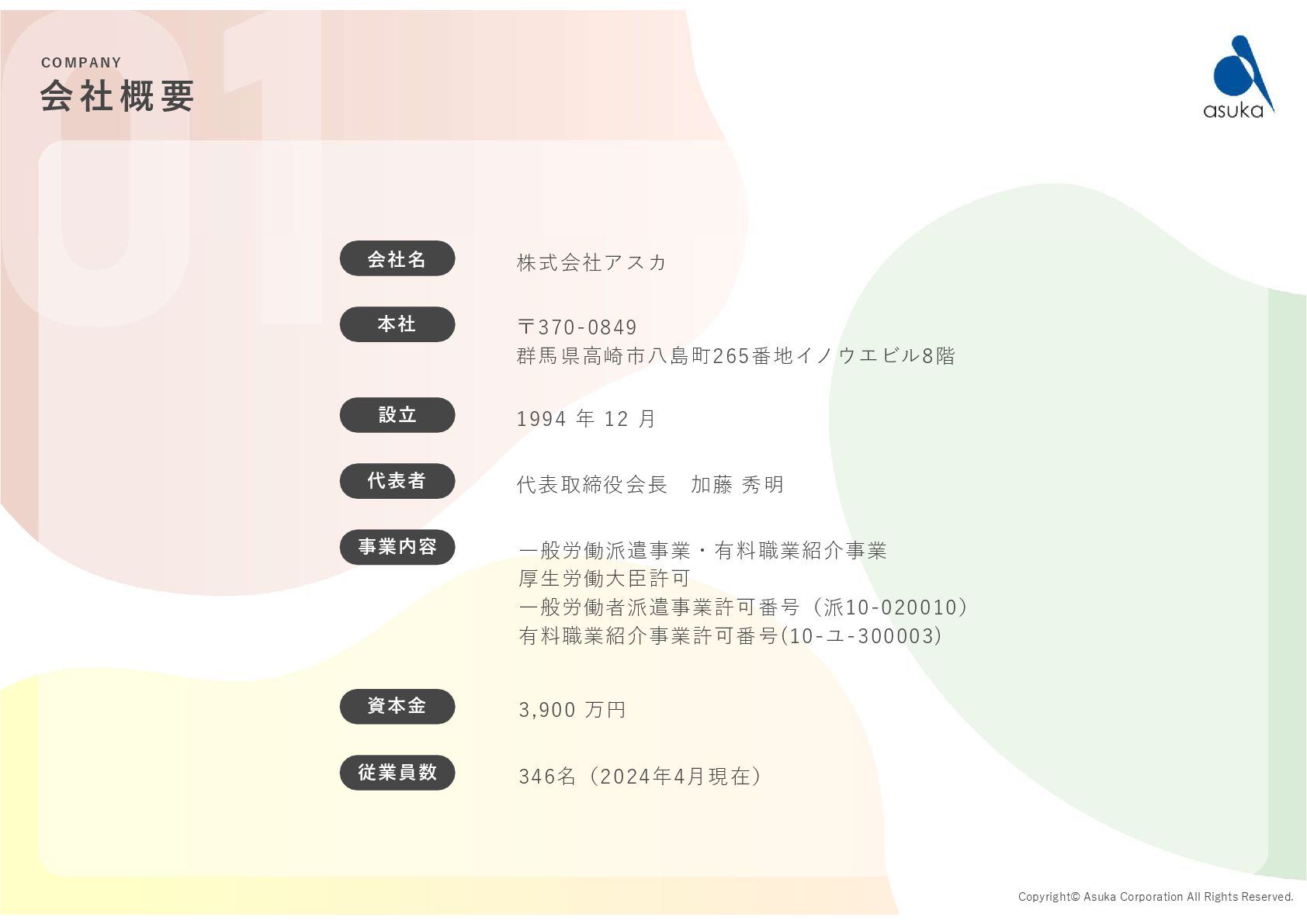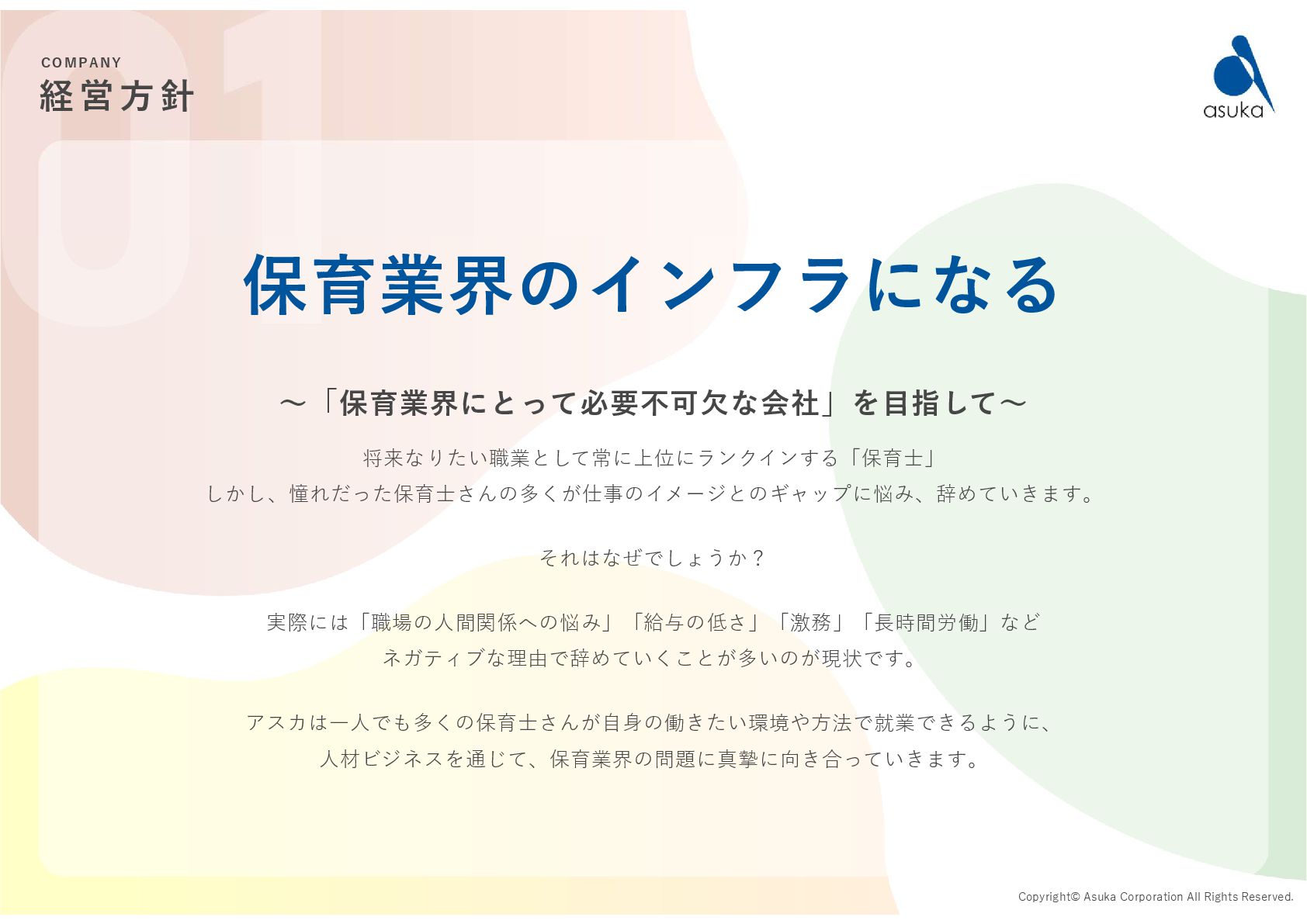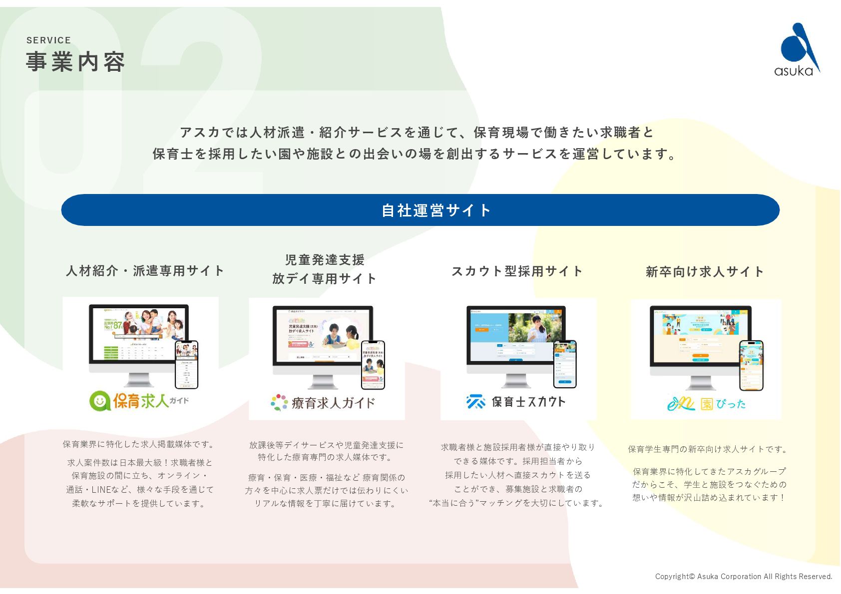 の許可を取得 2004.6 有料職業紹介事業 の許可を取得 2005.6 資本金を 2,400万円に増資 2006.5.31 資本金を 3,900万円に増資 2009.4 保育情報どっとこむ リリース 2017.4 保育士くらぶ リリース 2019.12.1 保育求人ガイド リリース 2020.9.15 コーポレートサイト リニューアル 2021.10.20 保育士スカウト リリース 2022.3 保育士有資格登録者数 10万人突破! 2022.10.26 医療・介護・保育分野における 適正な有料職業紹介事業者に認定 1994.12 資本金1,000万円で 設立 2023.9.13 療育求人ガイド リリース 2023.1.6 鹿児島支店オープン 全国20拠点突破! 2025.5.20 園ぴった リリース