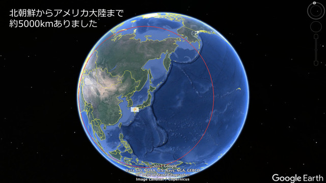北朝鮮からアメリカ⼤陸まで 約5000kmありました