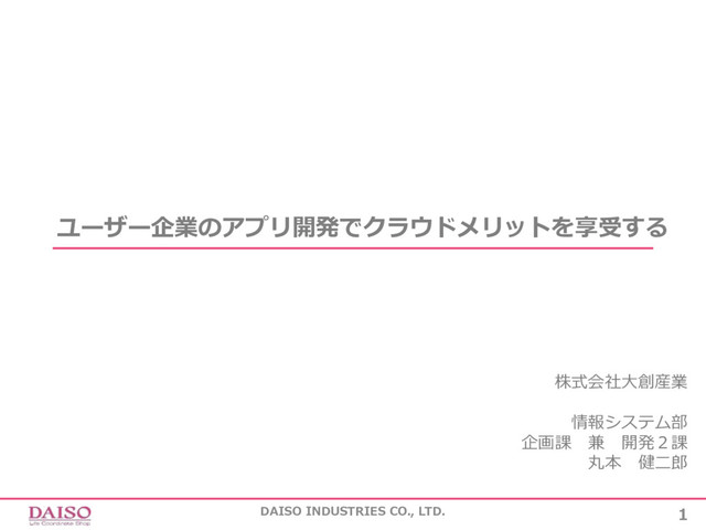 D A I S O D A I S O D A I S O D A I S O D A I S O D A I S O D A I S O D A I S O D A I S O D A I S O D A I S O D A I S O D A I S O D A I S O D A I S O D A I S O D A I S O D A I S O D A I S O D A I S O D A I S O D A I S O D A I S O D A I S O D A I S O D A I S O D A I S O D A I S O D A I S O D A I S O D A I S O D A I S O D A I S O D A I S O D A I S O D A I S O D A I S O D A I S O D A I S O D A I S O 裏仕掛けは・・・ DAISO INDUSTRIES CO., LTD. 11 0 8 24 16 200店舗で限界 (国内7%) 夜間処理 閉店時間 開店時間 D A I S O D A I S O D A I S O D A I S O D A I S O D A I S O D A I S O D A I S O D A I S O D A I S O D A I S O D A I S O D A I S O D A I S O D A I S O